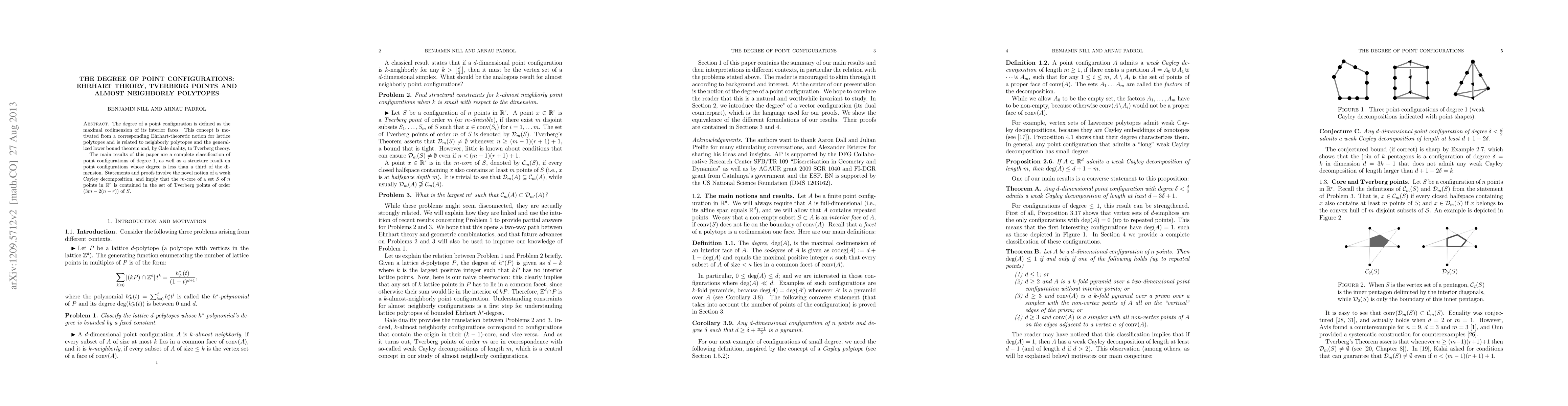 Researchers classify point configurations based on their degree, exploring connections to Ehrhart theory, Tverberg points, and neighborly polytopes, with implications for understanding the maximal codimension of interior faces.