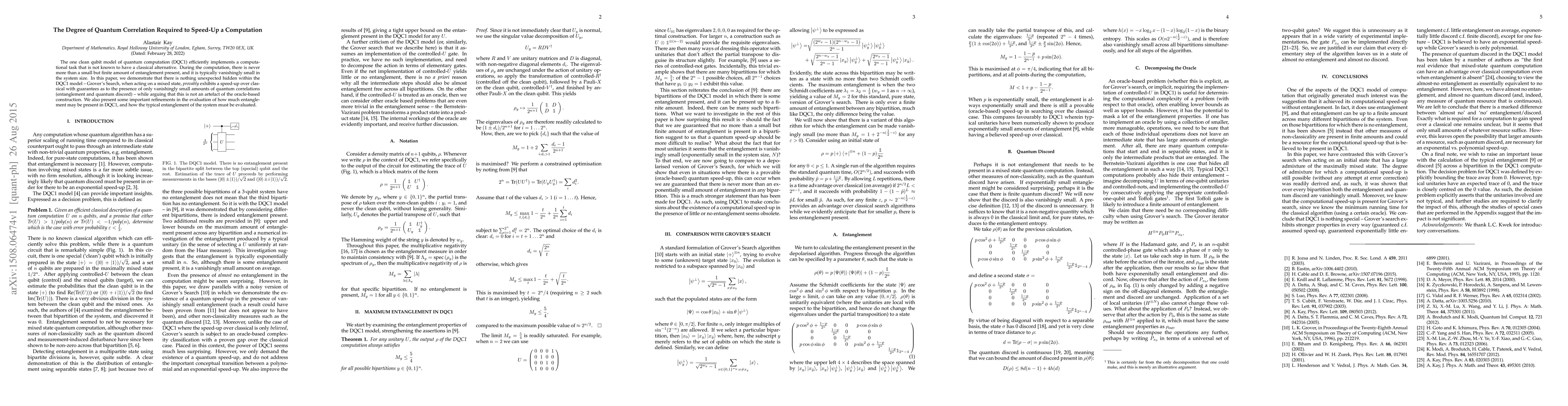 The one clean qubit model of quantum computation (DQC1) efficiently implements a computational task that is not known to have a classical alternative. During the computation, there is never more than a small but finite amount of entanglement present, and it is typically vanishingly small in the system size. In this paper, we demonstrate that there is nothing unexpected hidden within the DQC1 model -- Grover's Search, when acting on a mixed state, provably exhibits a speed-up over classical with guarantees as to the presence of only vanishingly small amounts of quantum correlations (entanglement and quantum discord) -- while arguing that this is not an artefact of the oracle-based construction. We also present some important refinements in the evaluation of how much entanglement may be present in DQC1, and how the typical entanglement of the system must be evaluated.