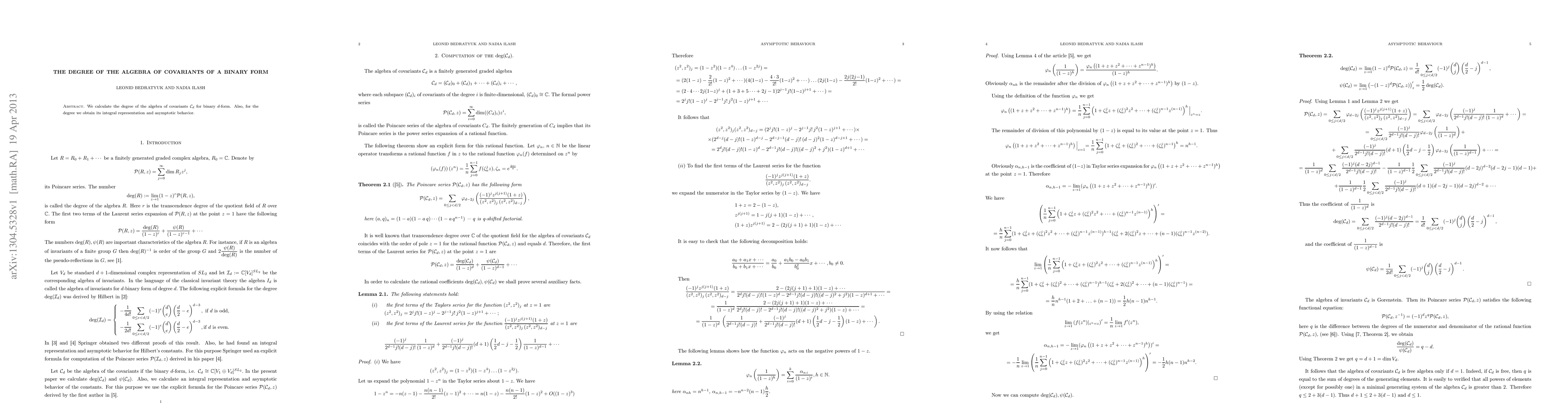 Researchers calculated the degree of the algebra of covariants for binary d-forms, providing an integral representation and asymptotic behavior, with implications for understanding geometric structures.