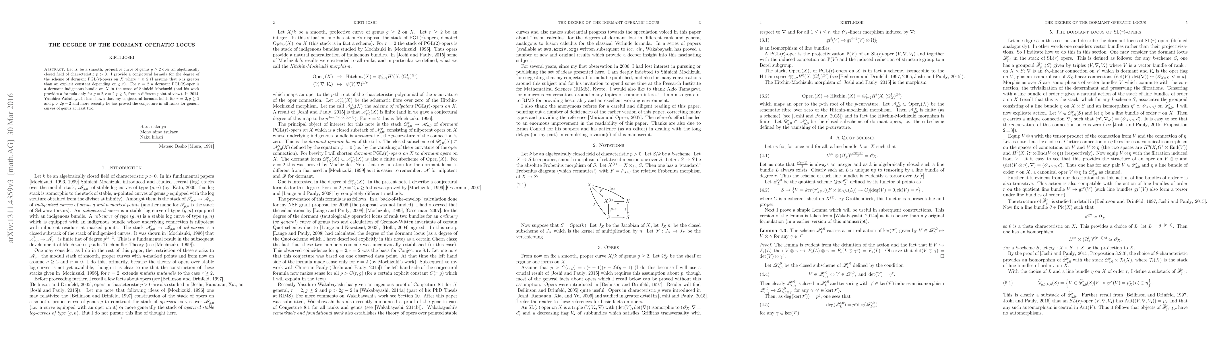Let $X$ be a smooth, projective curve of genus $g\geq 2$ over an algebraically closed field of characteristic $p>0$. I provide a conjectural formula for the degree of the scheme of dormant ${\rm PGL}(r)$-opers on $X$ where $r\geq 2$ (I assume that $p$ is greater than an explicit constant depending on $g,r$). For $r=2$ a dormant ${\rm PGL}(2)$-oper is a dormant indigenous bundle on $X$ in the sense of Shinichi Mochuzki (and his work provides a formula only for $g=2,r=2,p\geq 5$, from a different point of view). Recently Yasuhiro Wakabayashi has shown that my conjectural formula holds for $X$ generic, $r\geq 2$ and $p$ large.