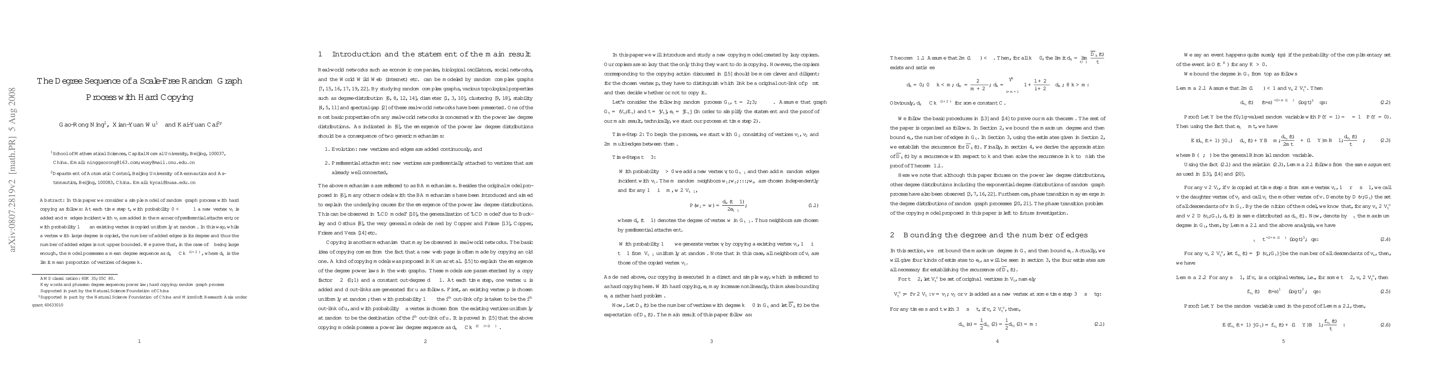 This paper models a random graph process with "hard copying," where new vertices are added with preferential attachment or existing vertices are copied randomly. It demonstrates that for large enough $\alpha$, the model results in a mean degree sequence where $d_k \sim Ck^{-(1+2\alpha)}$.