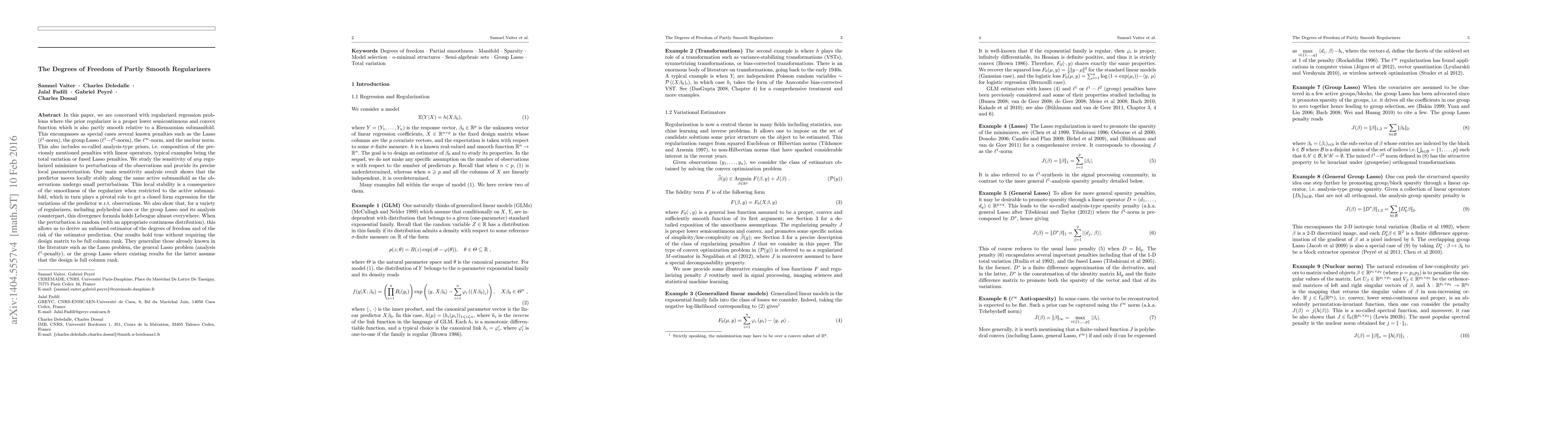 This paper investigates the sensitivity of regularized regression solutions to observation perturbations, focusing on partly smooth regularizers like the Lasso and group Lasso. It demonstrates local stability of the predictor on the active submanifold under small perturbations, providing a closed form for predictor variations and deriving an unbiased estimator for degrees of freedom and prediction risk, even when the design matrix is not full column rank.