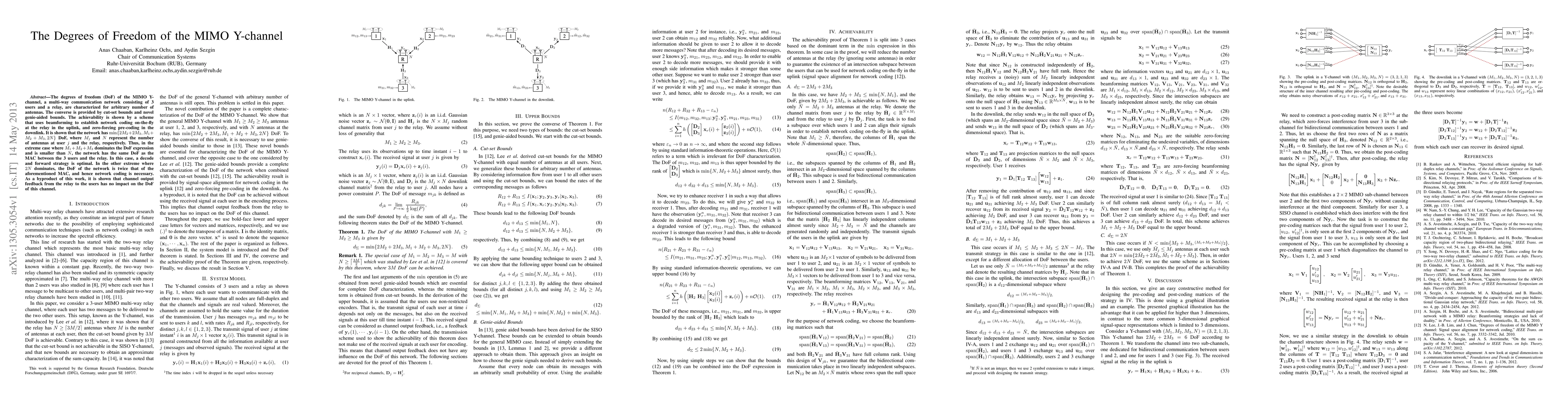 This paper characterizes the degrees of freedom (DoF) for the MIMO Y-channel with multiple antennas, showing that the network achieves min{2M_2+2M_3,M_1+M_2+M_3,2N} DoF, where M_j and N are the antennas at users and the relay, respectively. It concludes that network coding is optimal when 2N dominates, while a decode and forward strategy is better when M_1+M_2+M_3 is smaller.