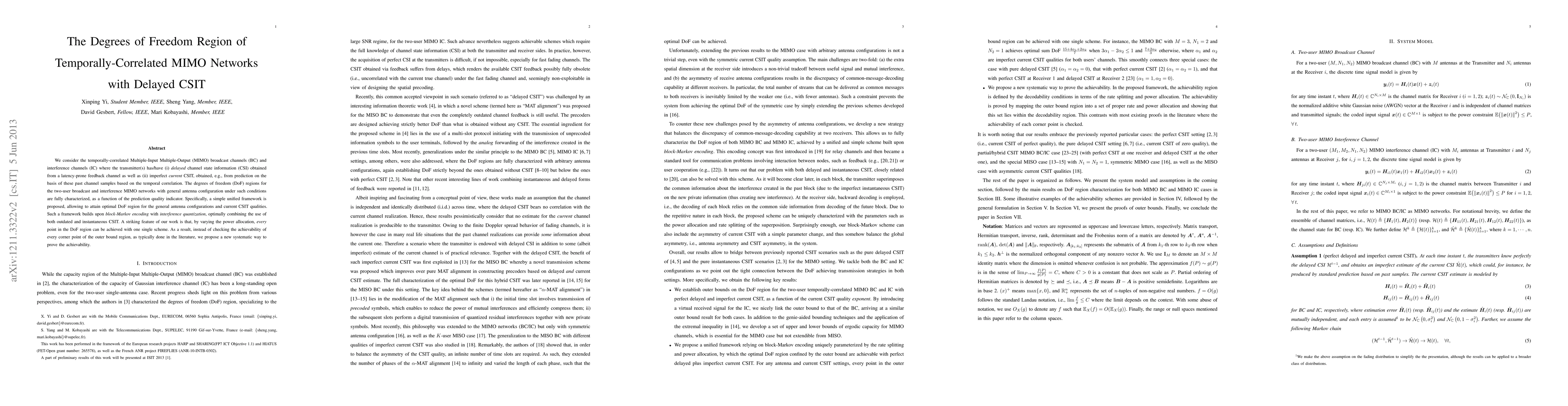 The introduction of a simple yet unified framework for optimal DoF region attainment in temporally-correlated MIMO networks with delayed and imperfect CSIT.