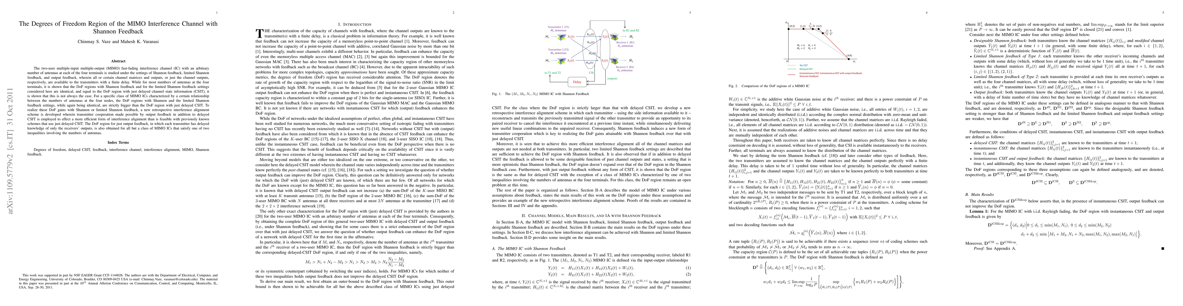 The two-user multiple-input multiple-output (MIMO) fast-fading interference channel (IC) with an arbitrary number of antennas at each of the four terminals is studied under the settings of Shannon feedback, limited Shannon feedback, and output feedback, wherein all or certain channel matrices and outputs, or just the channel outputs, respectively, are available to the transmitters with a finite delay. While for most numbers of antennas at the four terminals, it is shown that the DoF regions with Shannon feedback and for the limited Shannon feedback settings considered here are identical, and equal to the DoF region with just delayed channel state information (CSIT), it is shown that this is not always the case. For a specific class of MIMO ICs characterized by a certain relationship between the numbers of antennas at the four nodes, the DoF regions with Shannon and the limited Shannon feedback settings, while again being identical, are strictly bigger than the DoF region with just delayed CSIT. To realize these DoF gains with Shannon or limited Shannon feedback, a new retrospective interference alignment scheme is developed wherein transmitter cooperation made possible by output feedback in addition to delayed CSIT is employed to effect a more efficient form of interference alignment than is feasible with previously known schemes that use just delayed CSIT. The DoF region for just output feedback, in which each transmitter has delayed knowledge of only the receivers' outputs, is also obtained for all but a class of MIMO ICs that satisfy one of two inequalities involving the numbers of antennas.