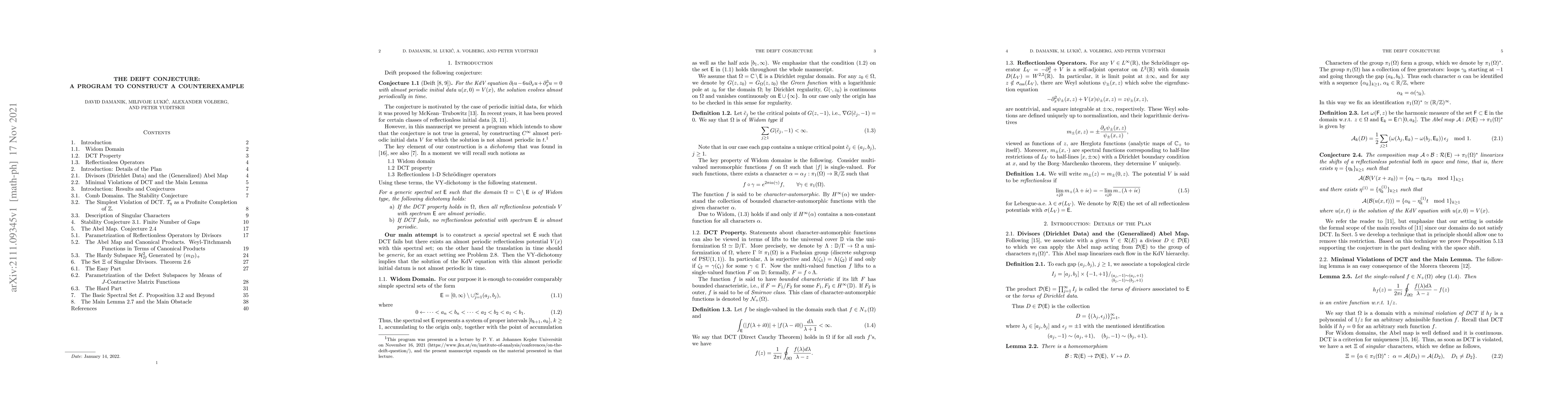 The paper proposes a program to construct a counterexample disproving the Deift conjecture, which asserts the non-almost periodic evolution of certain almost periodic functions under the KdV equation. This approach leverages a dichotomy found by Volberg and Yuditskii in solving the Kotani problem, distinguishing between almost periodic and non-almost periodic reflectionless potentials.