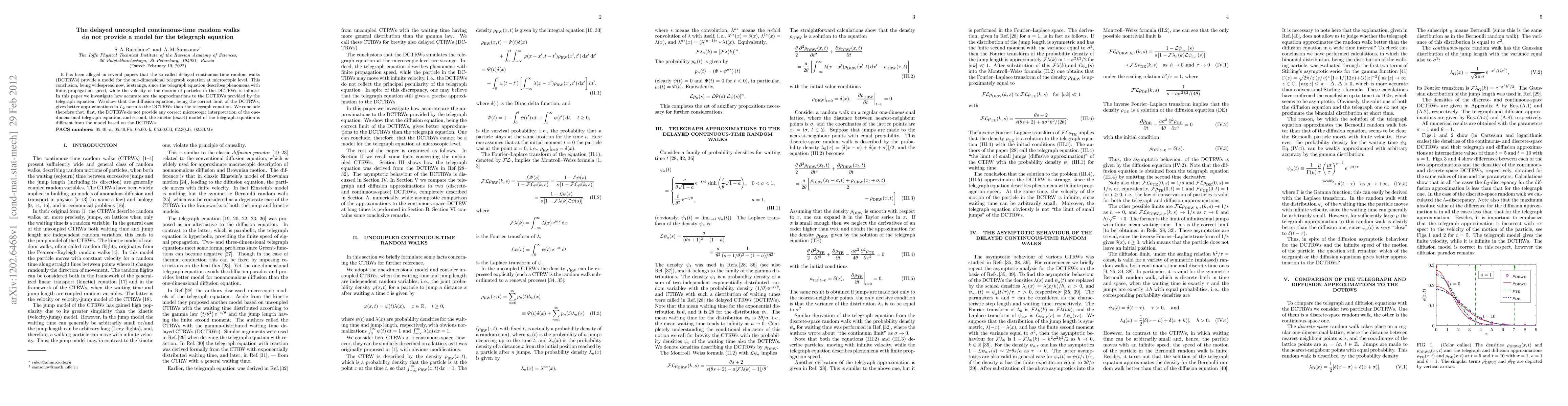 The paper finds that delayed continuous-time random walks do not accurately model the one-dimensional telegraph equation, which has infinite propagation speed, contradicting a widespread misconception in the field.