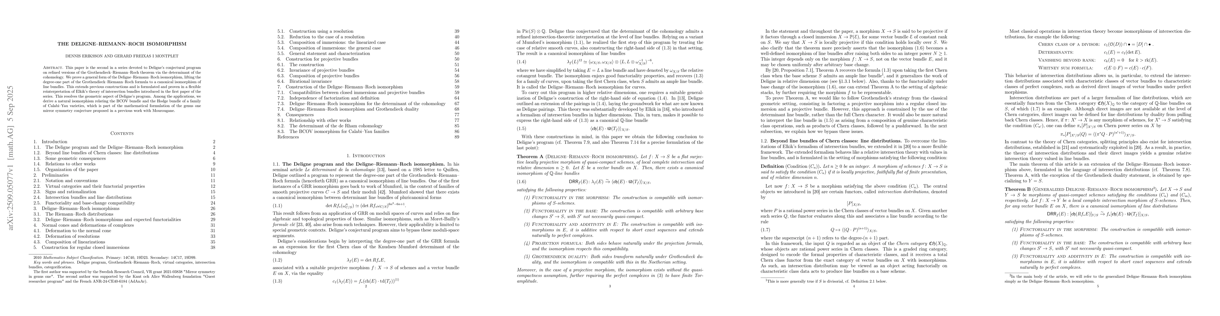 This paper is the second in a series devoted to Deligne's conjectural program on refined versions of the Grothendieck-Riemann-Roch theorem via the determinant of the cohomology. We prove a general form of the Deligne-Riemann-Roch isomorphism, lifting the degree-one part of the Grothendieck-Riemann-Roch formula to a canonical isomorphism of line bundles. This extends previous constructions and is formulated and proven in a flexible reinterpretation of Elkik's theory of intersection bundles introduced in the first paper of the series. This resolves the geometric aspect of Deligne's program. Among the applications, we derive a natural isomorphism relating the BCOV bundle and the Hodge bundle of a family of Calabi-Yau varieties, which is part of the mathematical formulation of the genus one mirror symmetry conjecture proposed in a previous work with Mourougane.