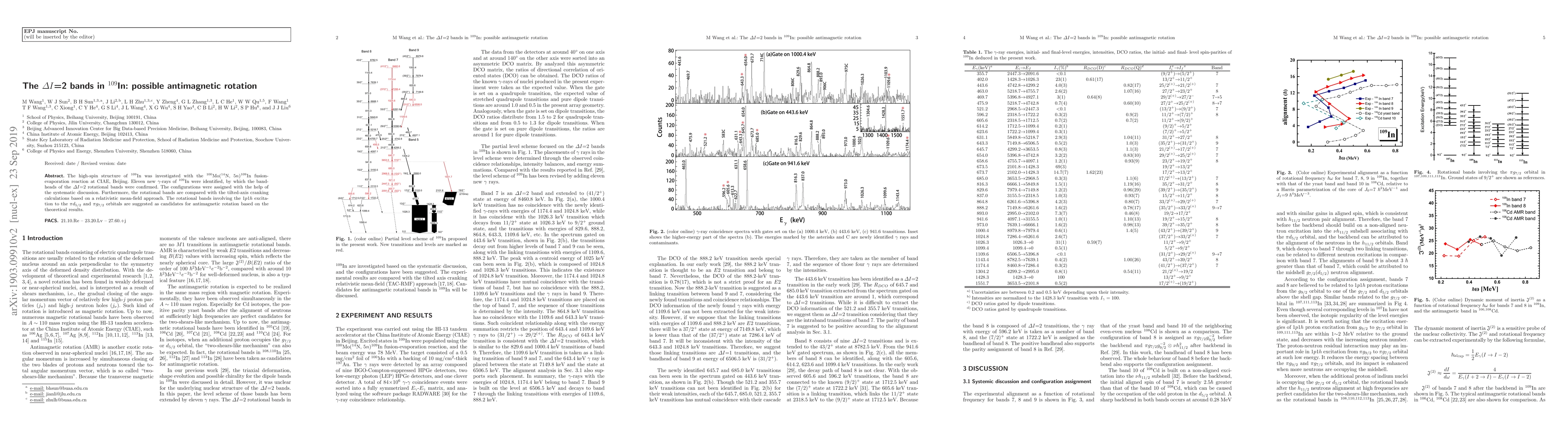 The paper identifies and confirms new $\gamma$-ray transitions in $^{109}$In, extending previous knowledge, and suggests these bands as potential candidates for antimagnetic rotation, a phenomenon not extensively studied in this specific nucleus.