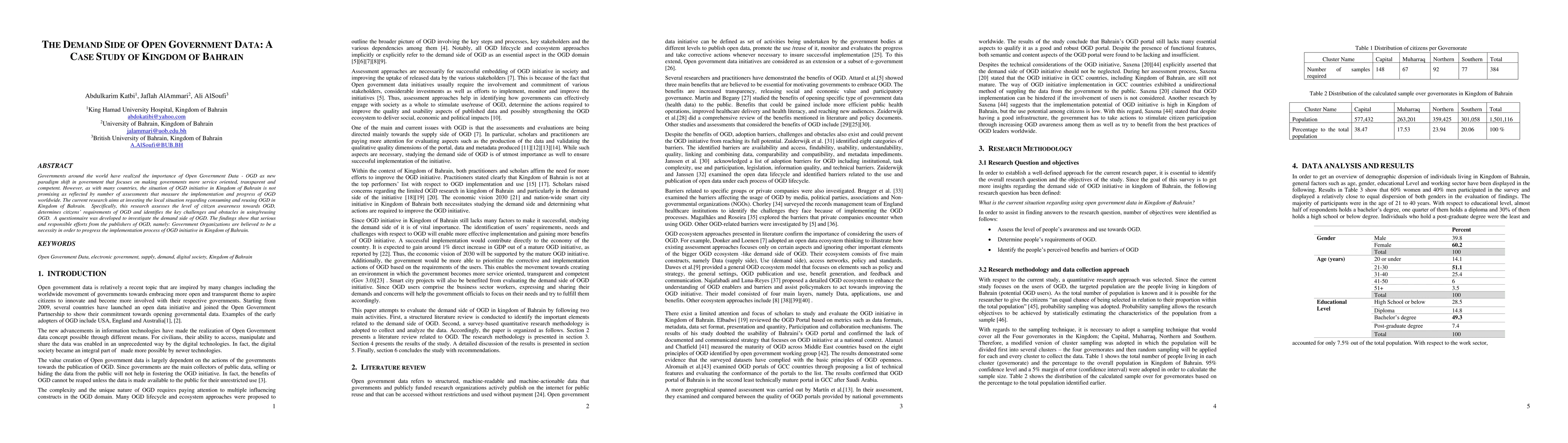 A case study in Bahrain assesses citizen awareness and requirements of Open Government Data (OGD), identifying key challenges to its implementation. Serious efforts from government organizations are seen as crucial for OGD progress.