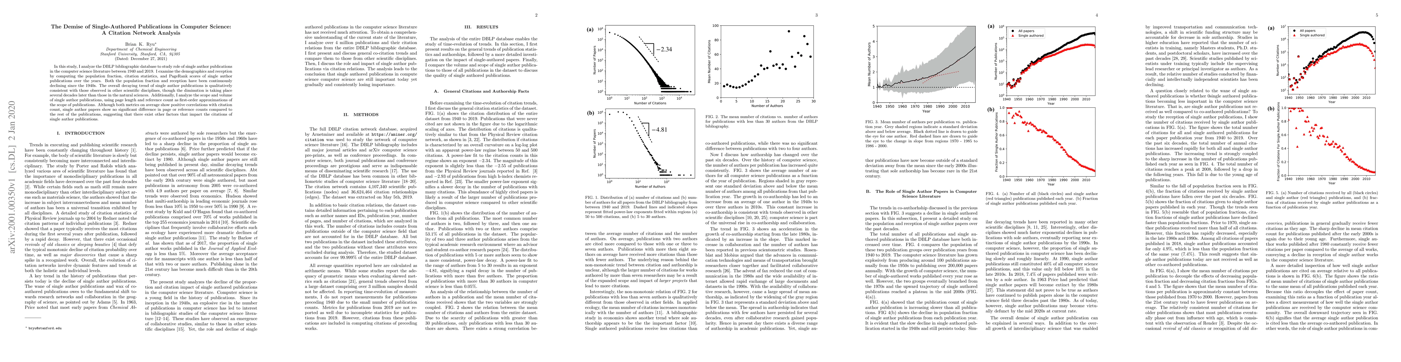 This study analyzes the DBLP database to track the decline of single-authored publications in computer science from 1940 to 2019, noting a consistent drop in their population and citation reception. The trend mirrors that of other scientific fields but is delayed by several decades.