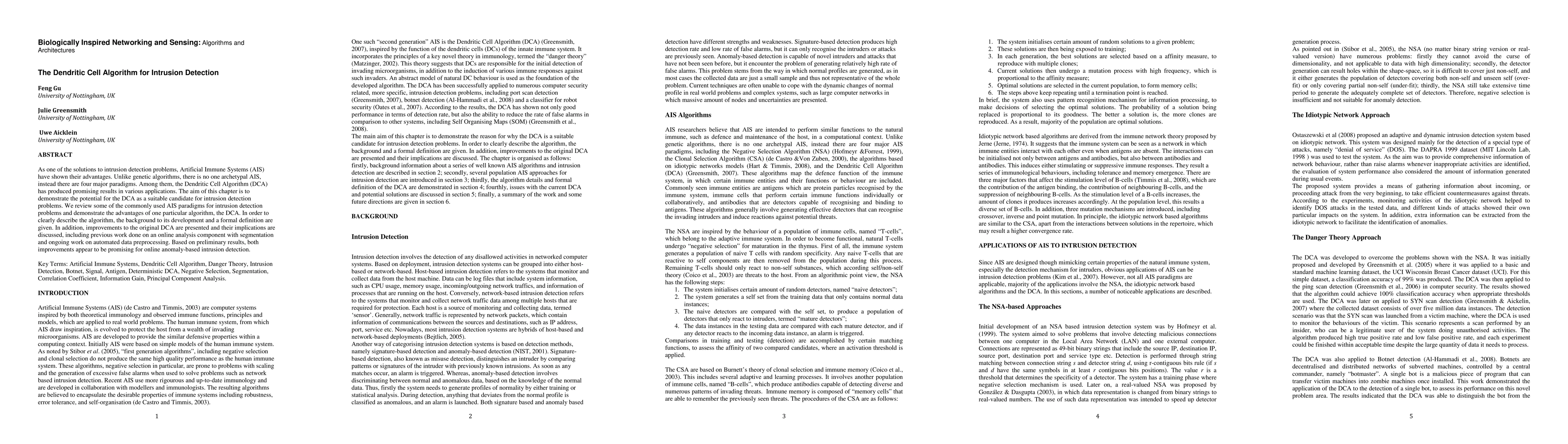 A research paper explores the effectiveness of the Dendritic Cell Algorithm (DCA) for intrusion detection, highlighting its advantages over other Artificial Immune Systems (AIS) paradigms and suggesting improvements for better online anomaly-based detection.