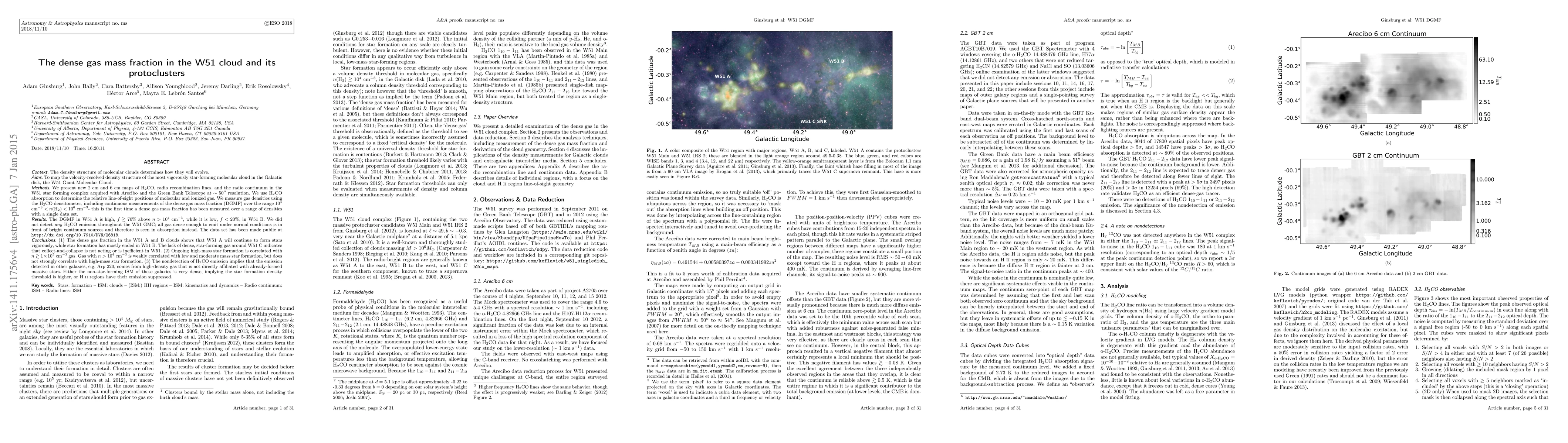We present new 2 cm and 6 cm maps of H2CO, radio recombination lines, and the radio continuum in the W51 star forming complex acquired with Arecibo and the Green Bank Telescope at ~50" resolution. We use H2CO absorption to determine the relative line-of-sight positions of molecular and ionized gas. We measure gas densities using the H2CO densitometer, including continuous measurements of the dense gas mass fraction (DGMF) over the range $10^4$ cm$^{-3}$ < n(H$_2$) < $10^6$ cm$^{-3}$- this is the first time a dense gas mass fraction has been measured over a range of densities with a single data set. The DGMF in W51A is high,f >~70% above $n>10^4$ cm$^{-3}$, while it is low, f<20%, in W51 B. We did not detect any H2CO emission throughout the W51 GMC; all gas dense enough to emit under normal conditions is in front of bright continuum sources and therefore is seen in absorption instead. The data set has been made public at http://dx.doi.org/10.7910/DVN/26818. Conclusions. (1) The dense gas fraction in the W51 A and B clouds shows that W51 A will continue to form stars vigorously, while star formation has mostly ended in W51 B. The lack of dense, star-forming gas around W51 C indicates that collect-and-collapse is not acting or is inefficient in W51. (2) Ongoing high-mass star formation is correlated with n ~ 1x10$^5$ cm$^{-3}$ gas. Gas with n > 10$^4$ cm$^{-3}$ is weakly correlated with low and moderate mass star formation, but does not strongly correlate with high-mass star formation. (3) The nondetection of H$_2$CO emission implies that the emission detected in other galaxies, e.g. Arp 220, comes from high-density gas that is not directly affiliated with already-formed massive stars. Either the non-star-forming ISM of these galaxies is very dense, implying the star formation density threshold is higher, or H II regions have their emission suppressed.