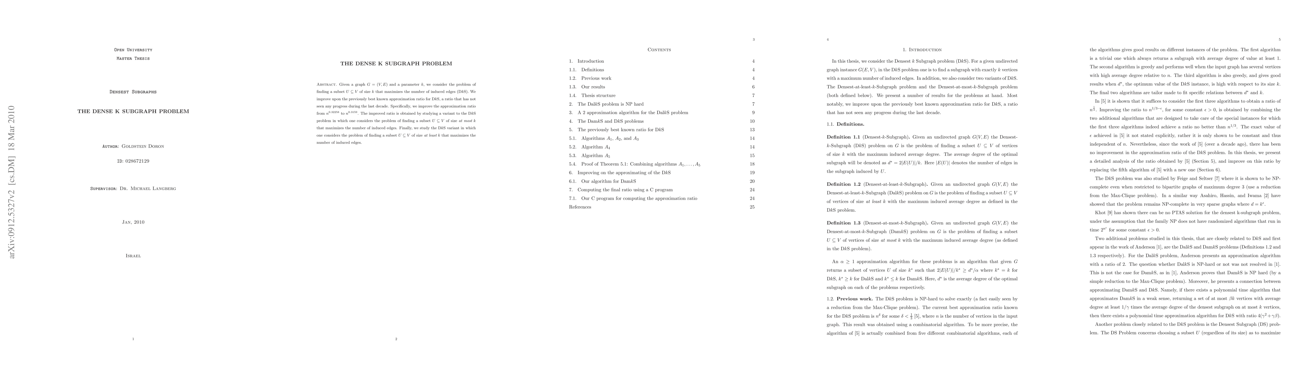 Given a graph G = (V,E) and a parameter k, we consider the problem of finding a subset U in V of size k that maximizes the number of induced edges (DkS). We improve upon the previously best known approximation ratio for DkS, a ratio that has not seen any progress during the last decade. Specifically, we improve the approximation ratio from n^{0.32258} to n^{0.3159}. The improved ratio is obtained by studying a variant to the DkS problem in which one considers the problem of finding a subset U in V of size at most k that maximizes the number of induced edges. Finally, we study the DkS variant in which one considers the problem of finding a subset U in V of size at least k that maximizes the number of induced edges.