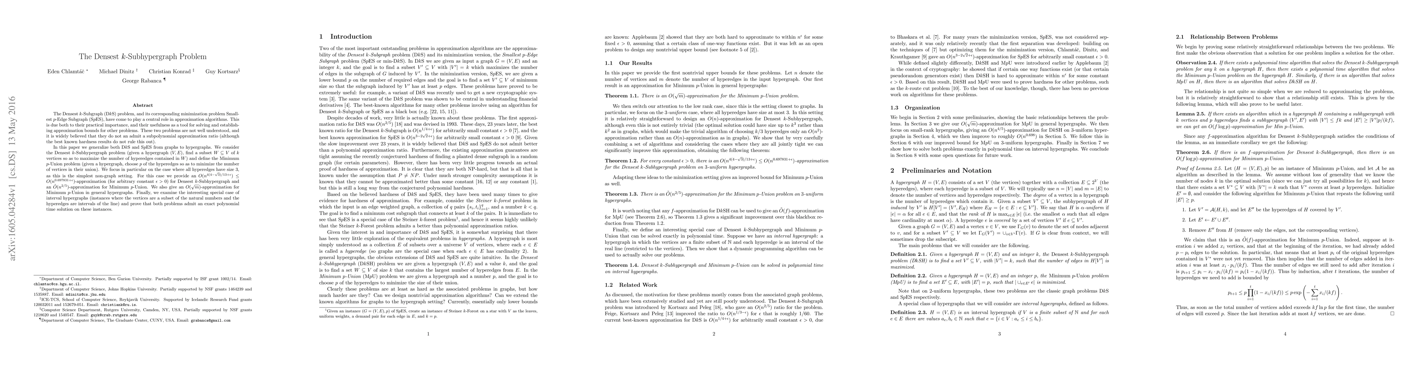 The Densest $k$-Subgraph (D$k$S) problem, and its corresponding minimization problem Smallest $p$-Edge Subgraph (S$p$ES), have come to play a central role in approximation algorithms. This is due both to their practical importance, and their usefulness as a tool for solving and establishing approximation bounds for other problems. These two problems are not well understood, and it is widely believed that they do not an admit a subpolynomial approximation ratio (although the best known hardness results do not rule this out). In this paper we generalize both D$k$S and S$p$ES from graphs to hypergraphs. We consider the Densest $k$-Subhypergraph problem (given a hypergraph $(V, E)$, find a subset $W\subseteq V$ of $k$ vertices so as to maximize the number of hyperedges contained in $W$) and define the Minimum $p$-Union problem (given a hypergraph, choose $p$ of the hyperedges so as to minimize the number of vertices in their union). We focus in particular on the case where all hyperedges have size 3, as this is the simplest non-graph setting. For this case we provide an $O(n^{4(4-\sqrt{3})/13 + \epsilon}) \leq O(n^{0.697831+\epsilon})$-approximation (for arbitrary constant $\epsilon > 0$) for Densest $k$-Subhypergraph and an $\tilde O(n^{2/5})$-approximation for Minimum $p$-Union. We also give an $O(\sqrt{m})$-approximation for Minimum $p$-Union in general hypergraphs. Finally, we examine the interesting special case of interval hypergraphs (instances where the vertices are a subset of the natural numbers and the hyperedges are intervals of the line) and prove that both problems admit an exact polynomial time solution on these instances.