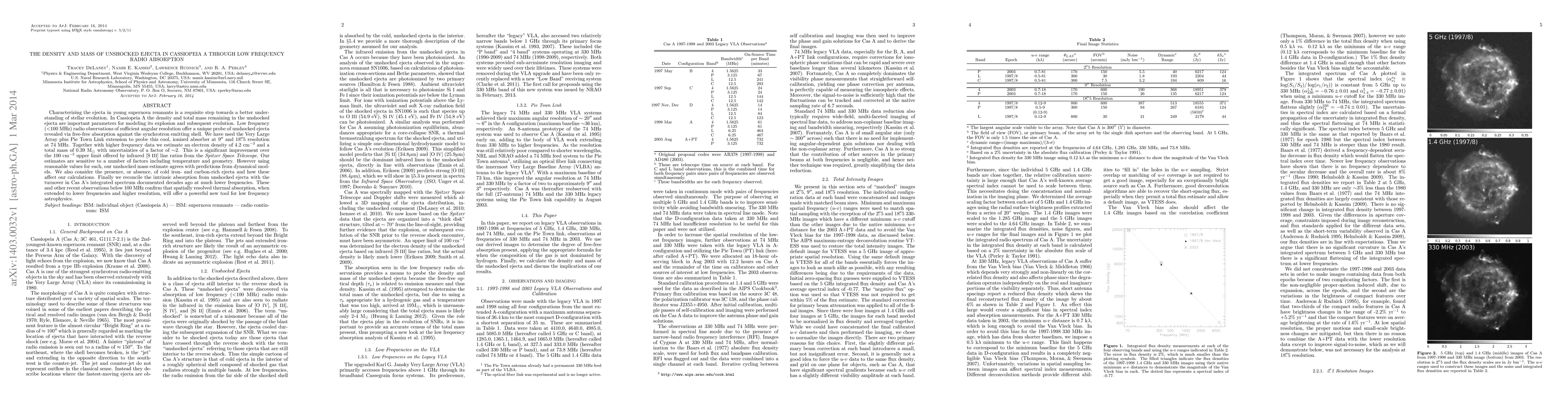This study uses low-frequency radio observations to determine the density and mass of unshocked ejecta in Cassiopeia A, estimating an electron density of 4.2 electrons per cubic centimeter and a total mass of 0.39 Solar masses, significantly improving previous upper limits. The findings support dynamical models and suggest that low-frequency radio absorption is a powerful new tool for astrophysics.