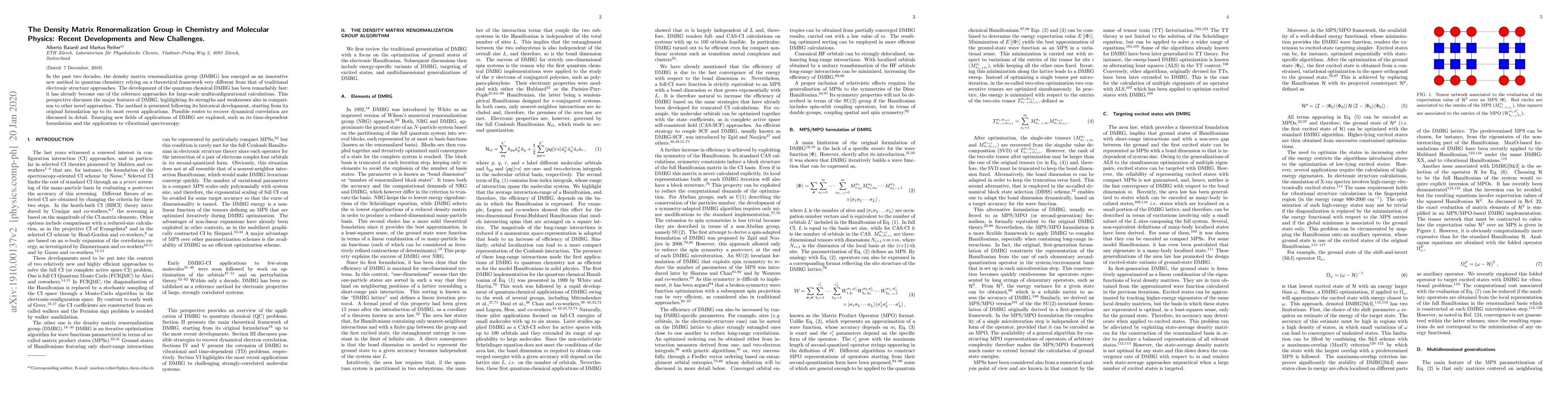 In the past two decades, the density matrix renormalization group (DMRG) has emerged as an innovative new method in quantum chemistry relying on a theoretical framework very different from that of traditional electronic structure approaches. The development of the quantum chemical DMRG has been remarkably fast: it has already become one of the reference approaches for large-scale multiconfigurational calculations. This perspective discusses the major features of DMRG, highlighting its strengths and weaknesses also in comparison to other novel approaches. The method is presented following its historical development, starting from its original formulation up to its most recent applications. Possible routes to recover dynamical correlation are discussed in detail. Emerging new fields of applications of DMRG are explored, in particular its time-dependent formulation and the application to vibrational spectroscopy.