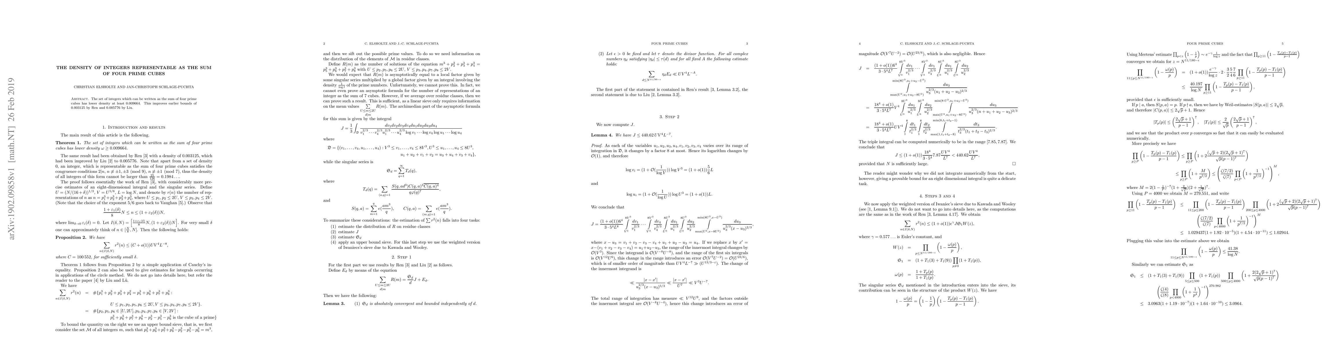 Summary: This paper establishes that the lower density of integers expressible as the sum of four prime cubes is at least $0.009664$, surpassing previous bounds of $0.003125$ and $0.005776$ set by Ren and Liu, respectively.