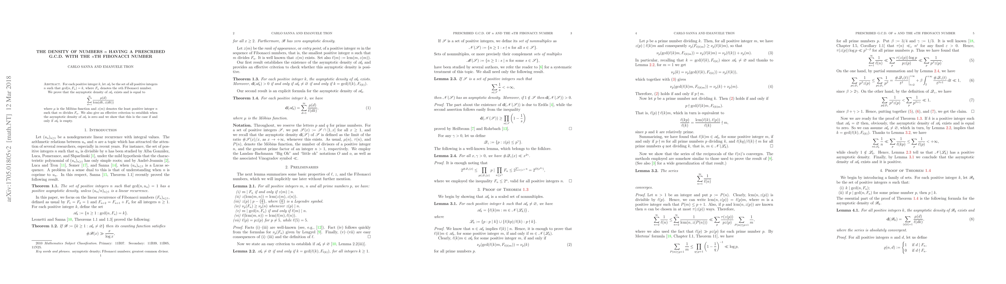 Researchers prove that the density of numbers with a prescribed greatest common divisor (GCD) to Fibonacci numbers follows a specific formula, which can help determine when the set is empty or has zero asymptotic density.