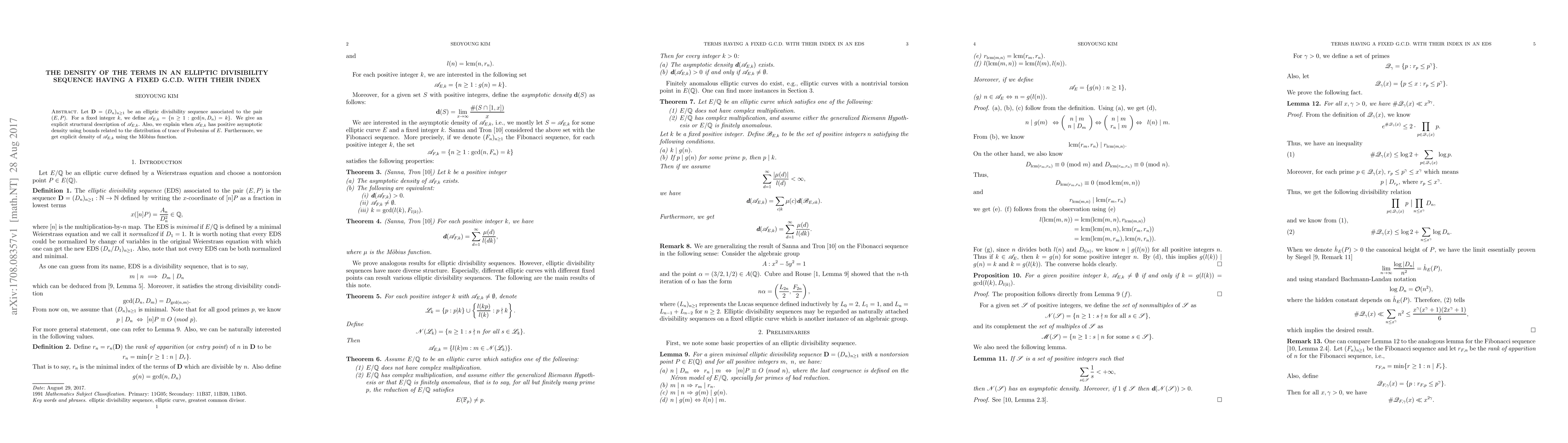 This paper studies the density of terms in an elliptic divisibility sequence with a fixed greatest common divisor (GCD) at their index, providing explicit structural descriptions and asymptotic densities using the M"obius function.