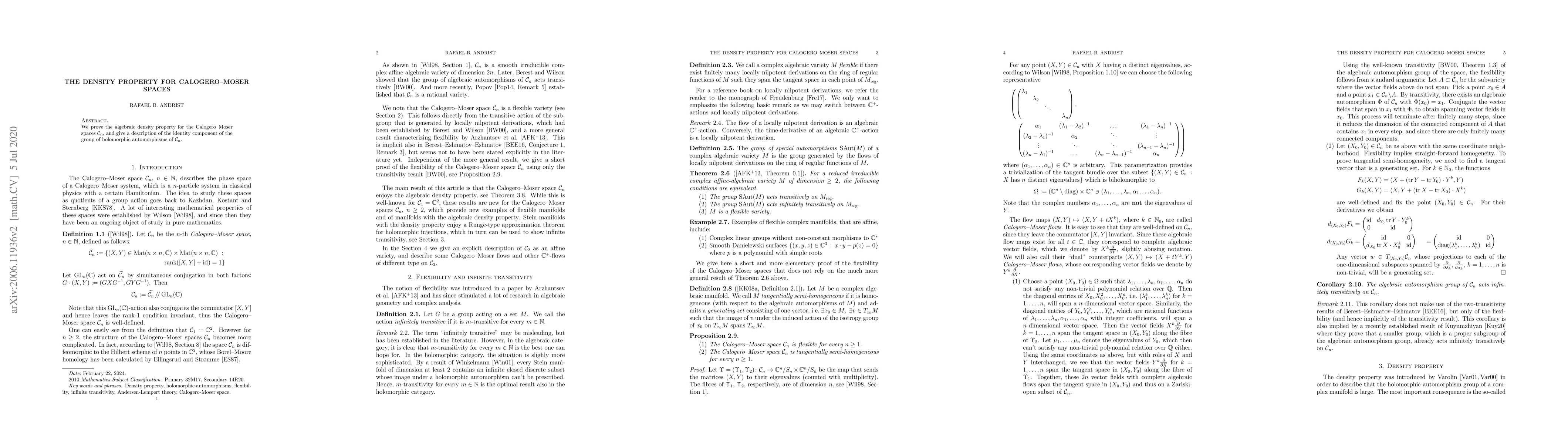 Summary: This paper establishes the algebraic density property for Calogero-Moser spaces $\mathcal{C}_{n}$ and describes the identity component of the group of their holomorphic automorphisms.