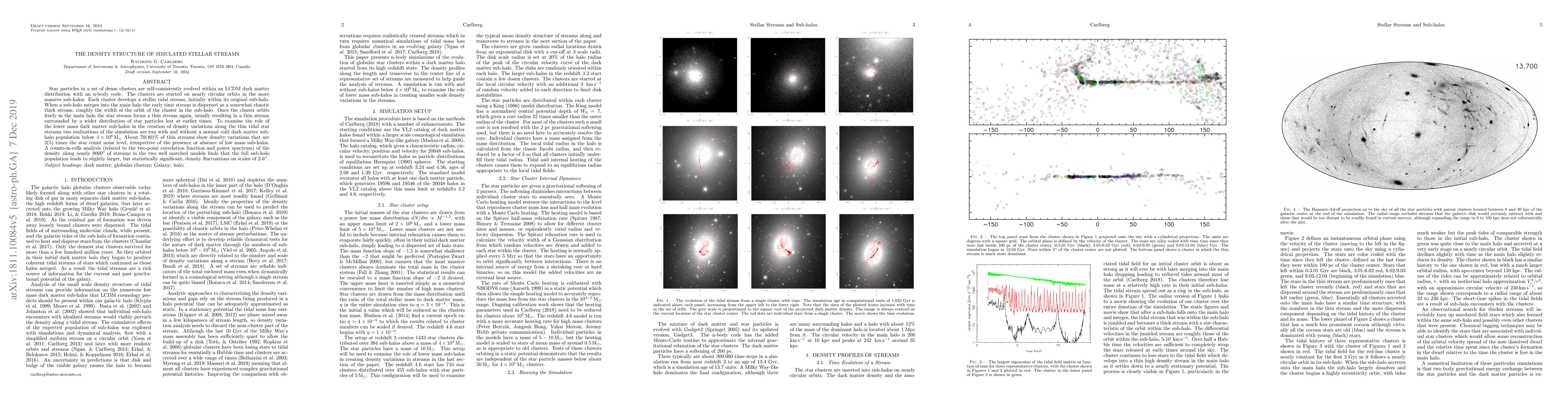 This paper investigates the density structure of simulated stellar streams, finding that while low-mass sub-halos contribute to some density variations, the primary cause is the varying tidal fields from the complex trajectories of the clusters as the galaxy assembles. Only about 12% of stream density variations are attributed to sub-halos below 4x10^8 M_sun.