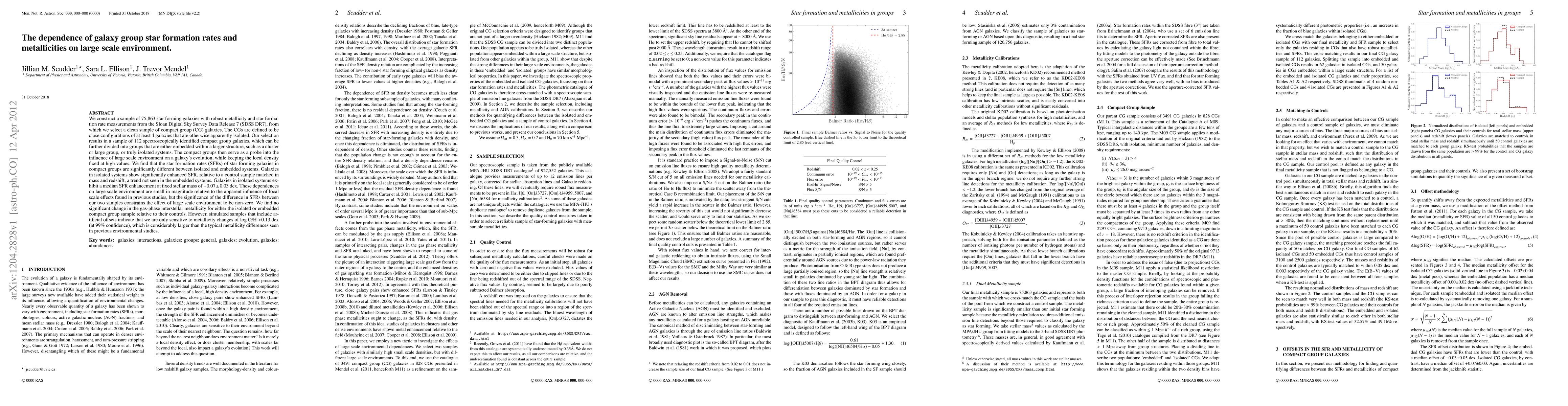We construct a sample of 75,863 star forming galaxies with robust metallicity and star formation rate measurements from the Sloan Digital Sky Survey Data Release 7 (SDSS DR7), from which we select a clean sample of compact group (CG) galaxies. The CGs are defined to be close configurations of at least 4 galaxies that are otherwise apparently isolated. Our selection results in a sample of 112 spectroscopically identified compact group galaxies, which can be further divided into groups that are either embedded within a larger structure, such as a cluster or large group, or truly isolated systems. The compact groups then serve as a probe into the influence of large scale environment on a galaxy's evolution, while keeping the local density fixed at high values. We find that the star formation rates (SFRs) of star forming galaxies in compact groups are significantly different between isolated and embedded systems. Galaxies in isolated systems show significantly enhanced SFR, relative to a control sample matched in mass and redshift, a trend not seen in the embedded systems. Galaxies in isolated systems exhibit a median SFR enhancement at fixed stellar mass of +0.07 \pm 0.03 dex. These dependences on large scale environment are small in magnitude relative to the apparent influence of local scale effects found in previous studies, but the significance of the difference in SFRs between our two samples constrains the effect of large scale environment to be non-zero. We find no significant change in the gas-phase interstellar metallicity for either the isolated or embedded compact group sample relative to their controls. However, simulated samples that include artificial offsets indicate that we are only sensitive to metallicity changes of log O/H >0.13 dex (at 99% confidence), which is considerably larger than the typical metallicity differences seen in previous environmental studies.
