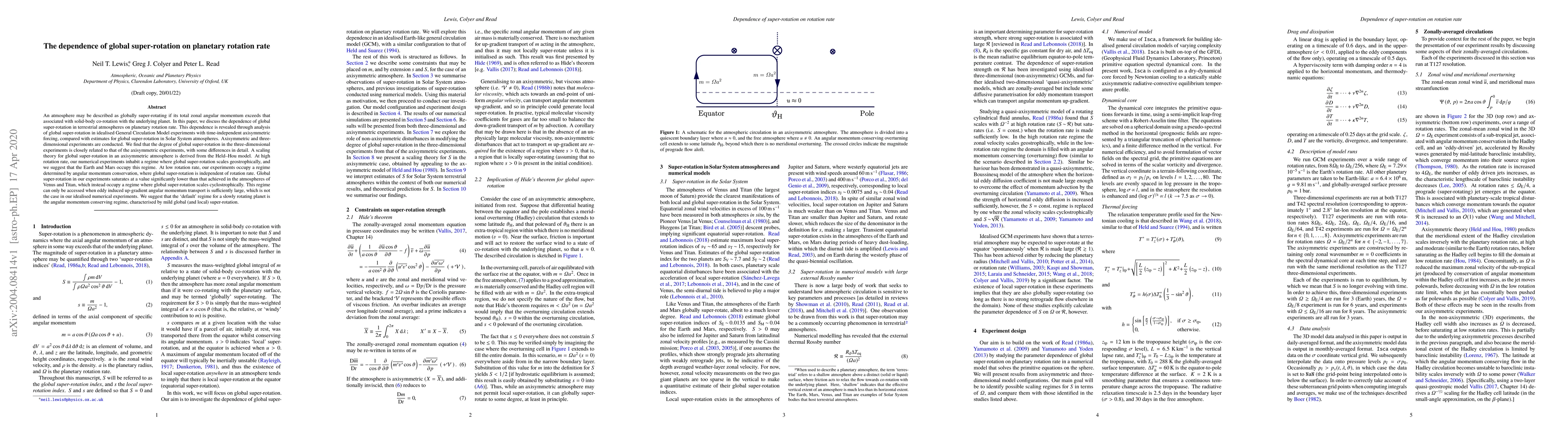 A study reveals that global super-rotation in planetary atmospheres depends on the planet's rotation rate, with different regimes dominating at high and low rotation rates.
