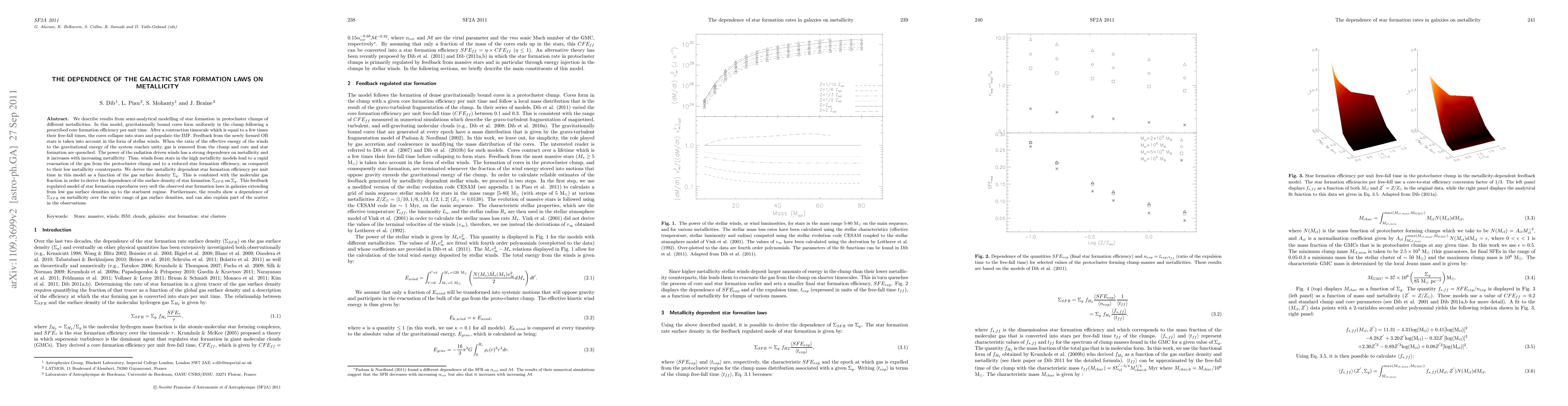We describe results from semi-analytical modelling of star formation in protocluster clumps of different metallicities. In this model, gravitationally bound cores form uniformly in the clump following a prescribed core formation efficiency per unit time. After a contraction timescale which is equal to a few times their free-fall times, the cores collapse into stars and populate the IMF. Feedback from the newly formed OB stars is taken into account in the form of stellar winds. When the ratio of the effective energy of the winds to the gravitational energy of the system reaches unity, gas is removed from the clump and core and star formation are quenched. The power of the radiation driven winds has a strong dependence on metallicity and it increases with increasing metallicity. Thus, winds from stars in the high metallicity models lead to a rapid evacuation of the gas from the protocluster clump and to a reduced star formation efficiency, as compared to their low metallicity counterparts. We derive the metallicity dependent star formation efficiency per unit time in this model as a function of the gas surface density Sigma_g. This is combined with the molecular gas fraction in order to derive the dependence of the surface density of star formation Sigma_SFR on Sigma_g. This feedback regulated model of star formation reproduces very well the observed star formation laws in galaxies extending from low gas surface densities up to the starburst regime. Furthermore, the results show a dependence of Sigma_SFR on metallicity over the entire range of gas surface densities, and can also explain part of the scatter in the observations.