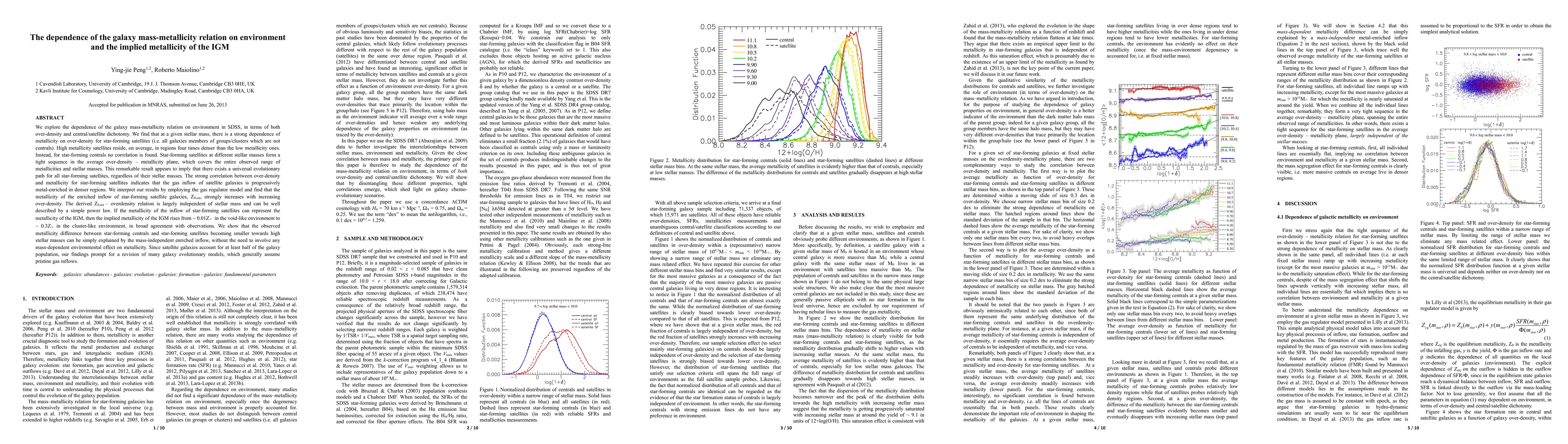 We explore the dependence of the galaxy mass-metallicity relation on environment in SDSS, in terms of both over-density and central/satellite dichotomy. We find that at a given stellar mass, there is a strong dependence of metallicity on over-density for star-forming satellites. Instead, for star-forming centrals no correlation is found. Star-forming satellites at different stellar masses form a tight sequence in the average overdensity - metallicity plane, which covers the entire observed range of metallicities and stellar masses. This remarkable result appears to imply that there exists a universal evolutionary path for all star-forming satellites, regardless of their stellar masses. The strong correlation between over-density and metallicity for star-forming satellites indicates that the gas inflow of satellite galaxies is progressively metal-enriched in denser regions. We interpret our results by employing the gas regulator model and find that the metallicity of the enriched inflow of star-forming satellite galaxies strongly increases with increasing over-density, largely independently of stellar mass. If the metallicity of the inflow of star-forming satellites can represent the metallicity of the IGM, then the implied metallicity of the IGM rises from ~ 0.01 solar metallicity in void-like environments to ~ 0.3 solar metallicity in cluster-like environments, in broad agreement with observations. We show that the observed metallicity difference between star-forming centrals and star-forming satellites becoming smaller towards high stellar masses can be simply explained by the mass-independent enriched inflow, without the need to involve any mass-dependent environmental effect on metallicity. Since satellite galaxies account for at least half of the galaxy population, our findings prompt for a revision of many galaxy evolutionary models, which generally assume pristine gas inflows.