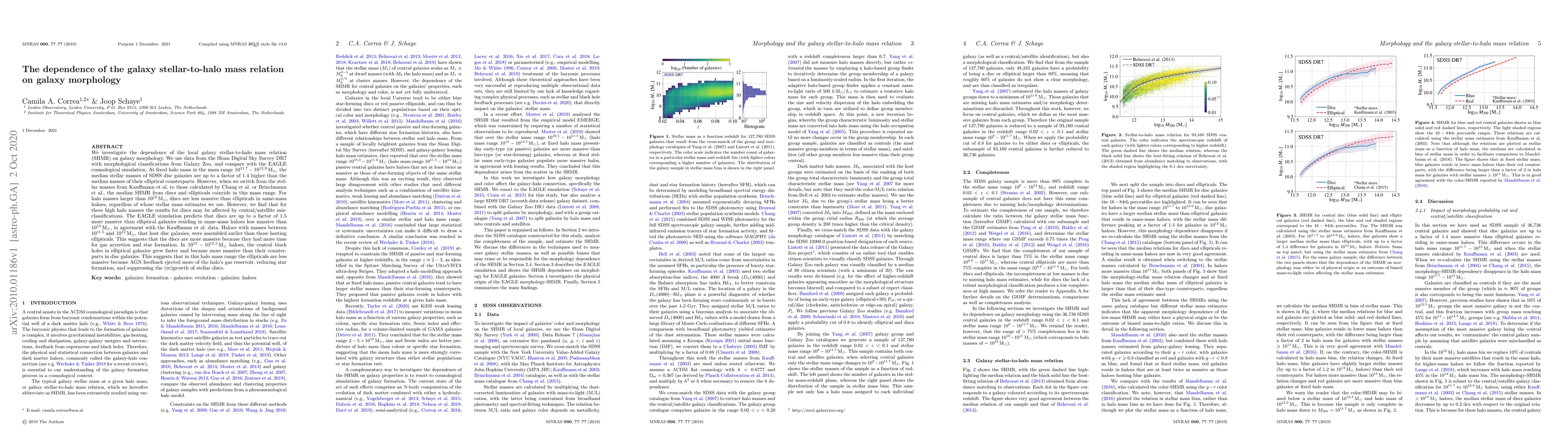 This study examines how galaxy morphology influences the stellar-to-halo mass relation (SHMR) using SDSS and EAGLE data, finding that disc galaxies have higher stellar masses than elliptical galaxies at lower halo masses, but the relationship reverses at higher masses. The EAGLE simulation supports these findings, suggesting different assembly histories and feedback mechanisms drive these morphological differences.