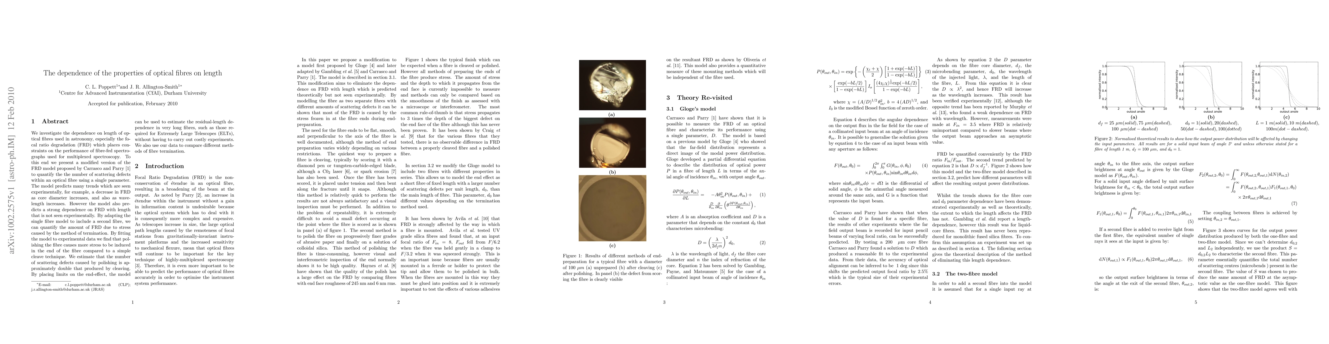Researchers studied how optical fibers used in astronomy change over length, finding that polishing causes more stress than cleaving, leading to fewer defects, and developed a model to predict these changes.