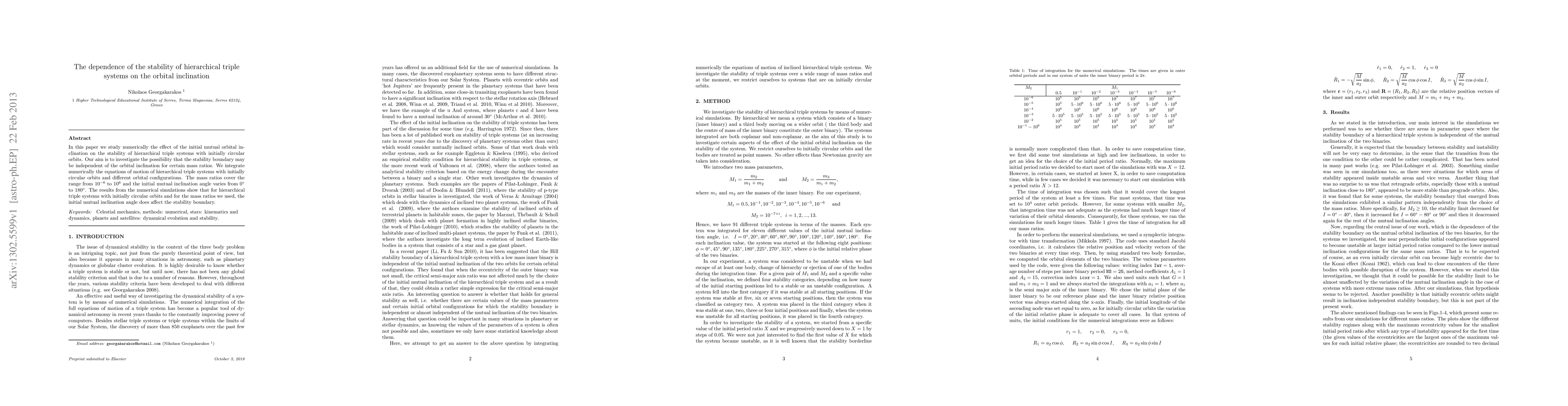 In this paper we study numerically the effect of the initial mutual orbital inclination on the stability of hierarchical triple systems with initially circular orbits. Our aim is to investigate the possibility that the stability boundary may be independent of the orbital inclination for certain mass ratios. We integrate numerically the equations of motion of hierarchical triple systems with initially circular orbits and different orbital configurations. The mass ratios cover the range from 0.000001 to 1000000 and the initial mutual inclination angle varies from 0 to 180 degrees. The results from the numerical simulations show that for hierarchical triple systems with initially circular orbits and for the mass ratios we used, the initial mutual inclination angle does affect the stability boundary.