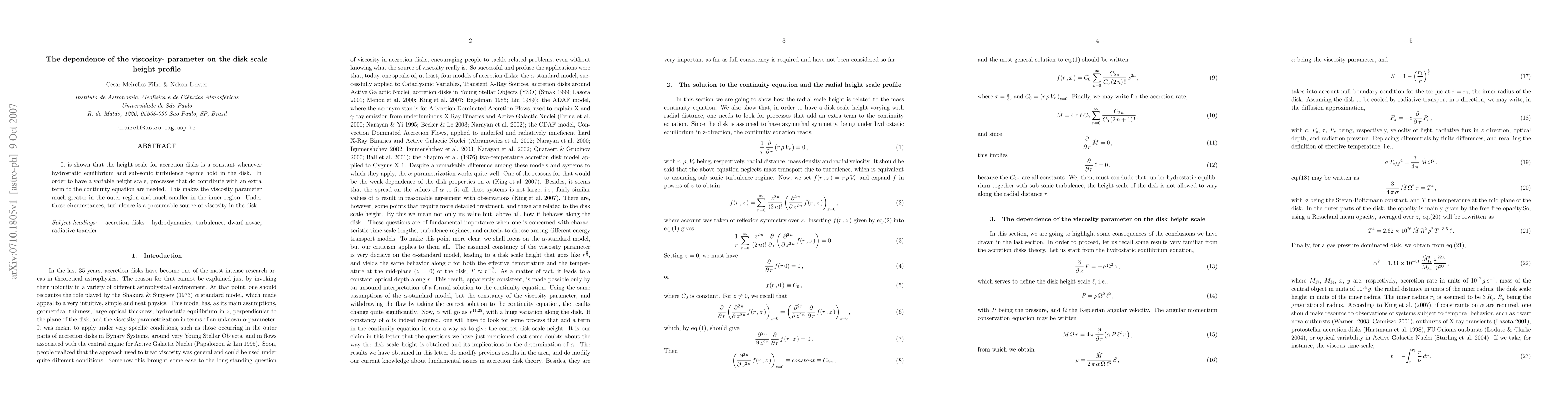 The research establishes that accretion disk height scale is constant under hydrostatic equilibrium and sub-sonic turbulence. Variable height scales require additional continuity equation terms, leading to greater viscosity in outer regions and lesser in inner regions, suggesting turbulence as a potential viscosity source in disks.