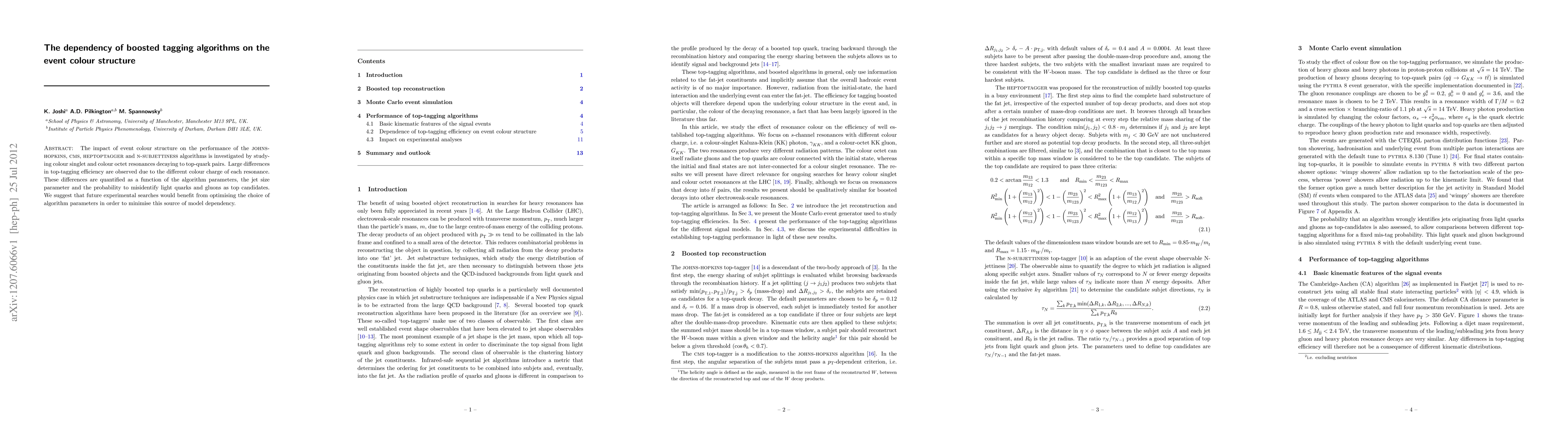 The impact of event colour structure on the performance of the Johns-Hopkins, CMS, HEPToptagger and N-Subjettiness algorithms is investigated by studying colour singlet and colour octet resonances decaying to top-quark pairs. Large differences in top-tagging efficiency are observed due to the different colour charge of each resonance. These differences are quantified as a function of the algorithm parameters, the jet size parameter and the probability to misidentify light quarks and gluons as top candidates. We suggest that future experimental searches would benefit from optimising the choice of algorithm parameters in order to minimise this source of model dependency.