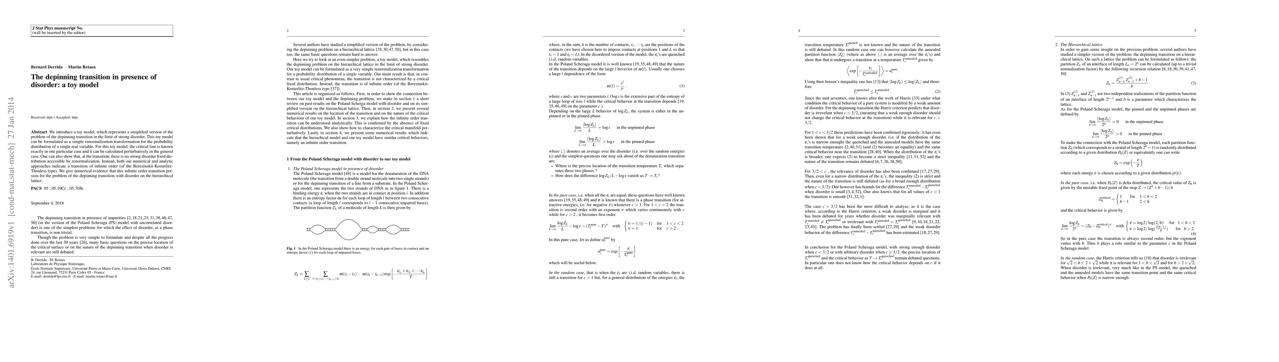 This paper introduces a simplified toy model to study the depinning transition under strong disorder, revealing a transition of infinite order akin to the Berezinskii-Kosterlitz-Thouless type, and provides numerical evidence for its persistence in hierarchical lattice systems.