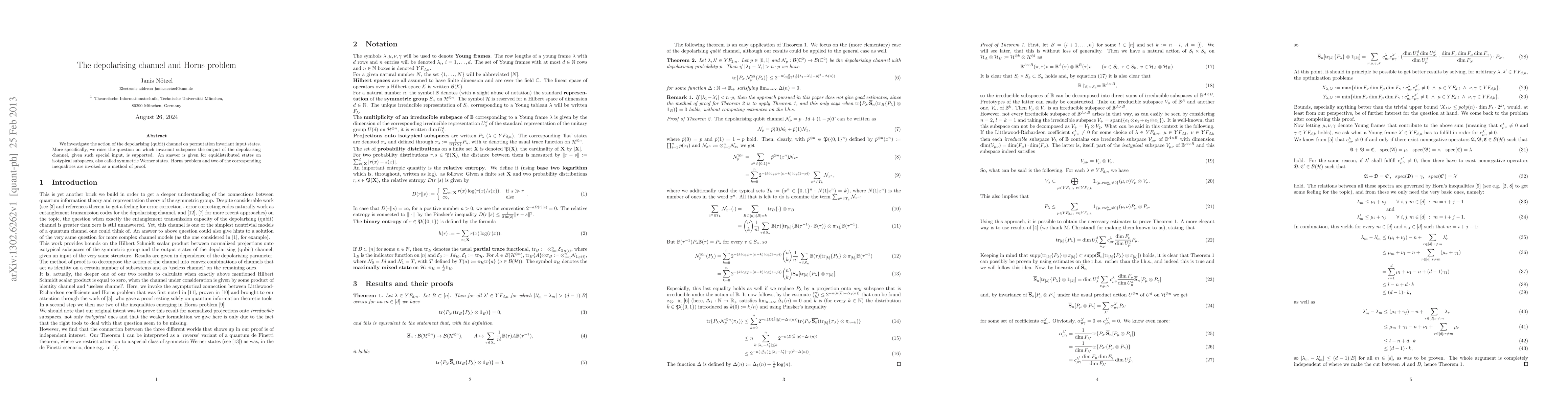 We investigate the action of the depolarising (qubit) channel on permutation invariant input states. More specifically, we raise the question on which invariant subspaces the output of the depolarising channel, given such special input, is supported. An answer is given for equidistributed states on isotypical subspaces, also called symmetric Werner states. Horns problem and two of the corresponding inequalities are invoked as a method of proof.