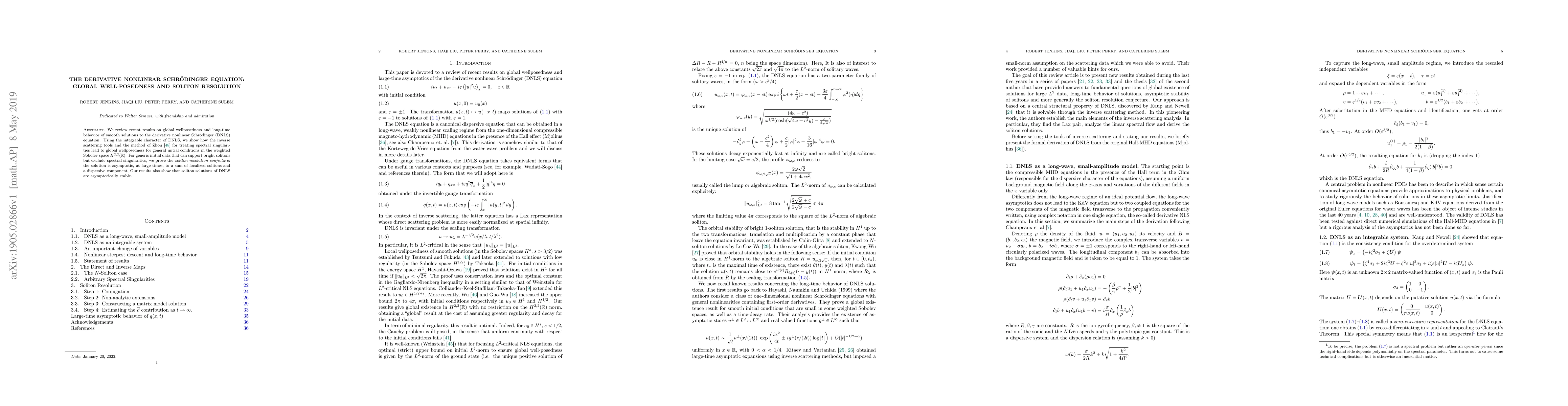 This paper reviews global well-posedness and long-time behavior of smooth solutions to the derivative nonlinear Schrödinger equation. It leverages integrable properties and inverse scattering techniques to establish global well-posedness in $H^{2,2}(\mathbb{R})$, and proves the soliton resolution conjecture for initial data supporting bright solitons.