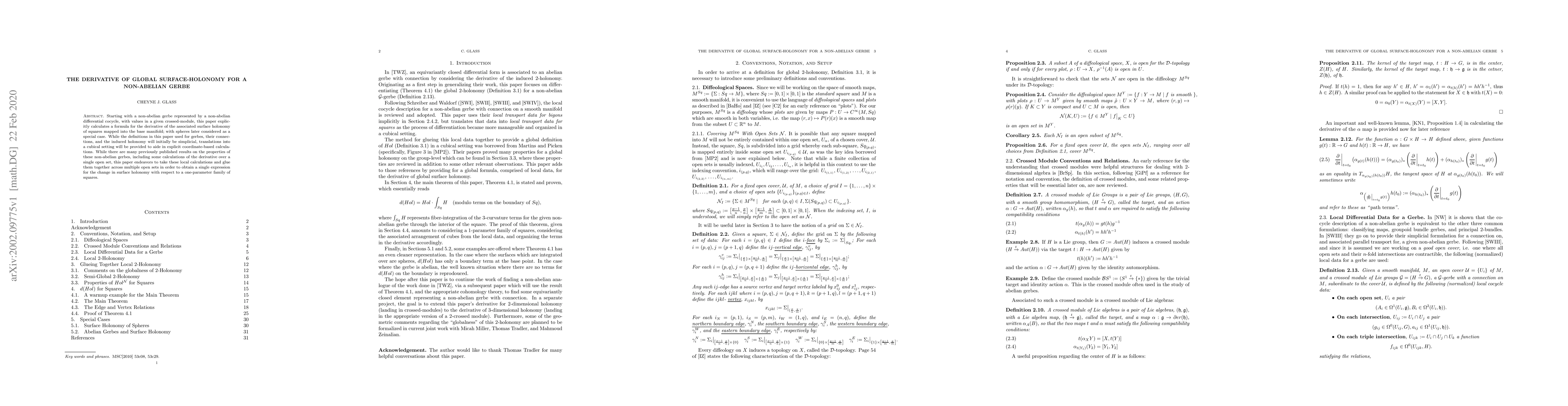 This paper computes the derivative of global surface holonomy for non-abelian gerbes, starting with a simplicial representation and translating into a cubical setting. It focuses on deriving a unified expression for the change in holonomy across multiple open sets by gluing local calculations.