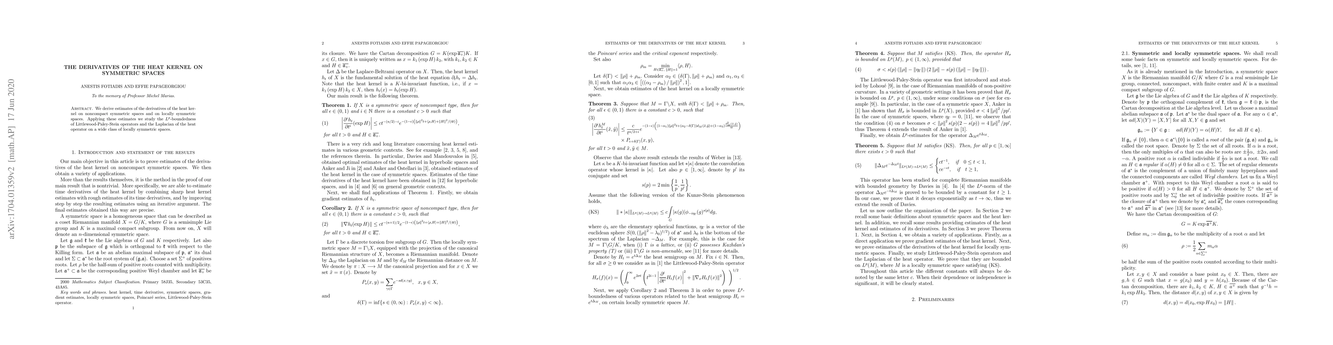 This paper provides estimates for the derivatives of the heat kernel on noncompact and locally symmetric spaces, and uses these estimates to analyze the $L^{p}$-boundedness of Littlewood-Paley-Stein operators and the Laplacian of the heat operator on such spaces.