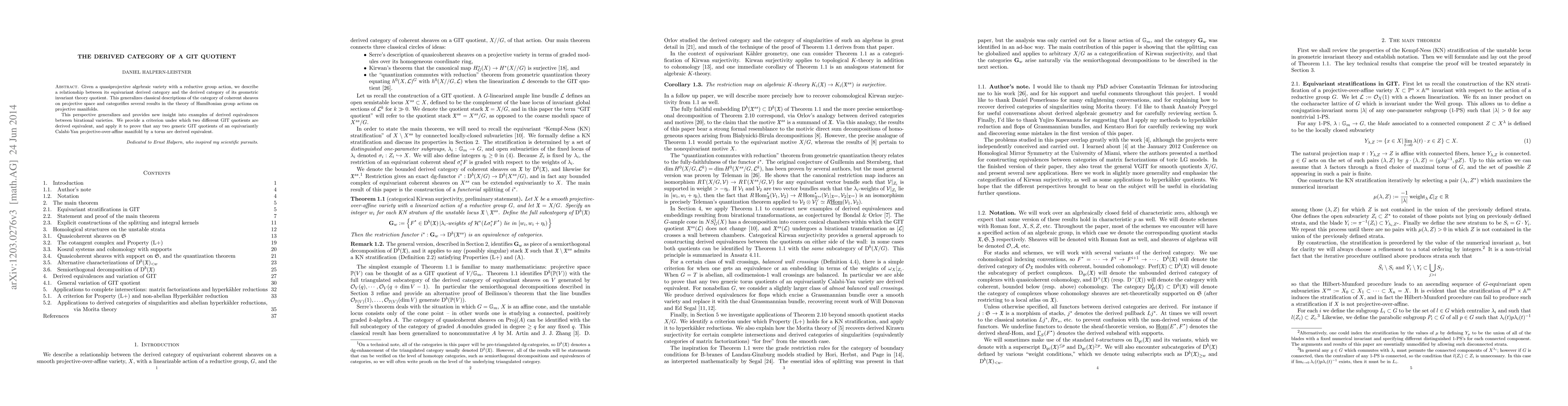 Given a quasiprojective algebraic variety with a reductive group action, we describe a relationship between its equivariant derived category and the derived category of its geometric invariant theory quotient. This generalizes classical descriptions of the category of coherent sheaves on projective space and categorifies several results in the theory of Hamiltonian group actions on projective manifolds. This perspective generalizes and provides new insight into examples of derived equivalences between birational varieties. We provide a criterion under which two different GIT quotients are derived equivalent, and apply it to prove that any two generic GIT quotients of an equivariantly Calabi-Yau projective-over-affine manifold by a torus are derived equivalent.