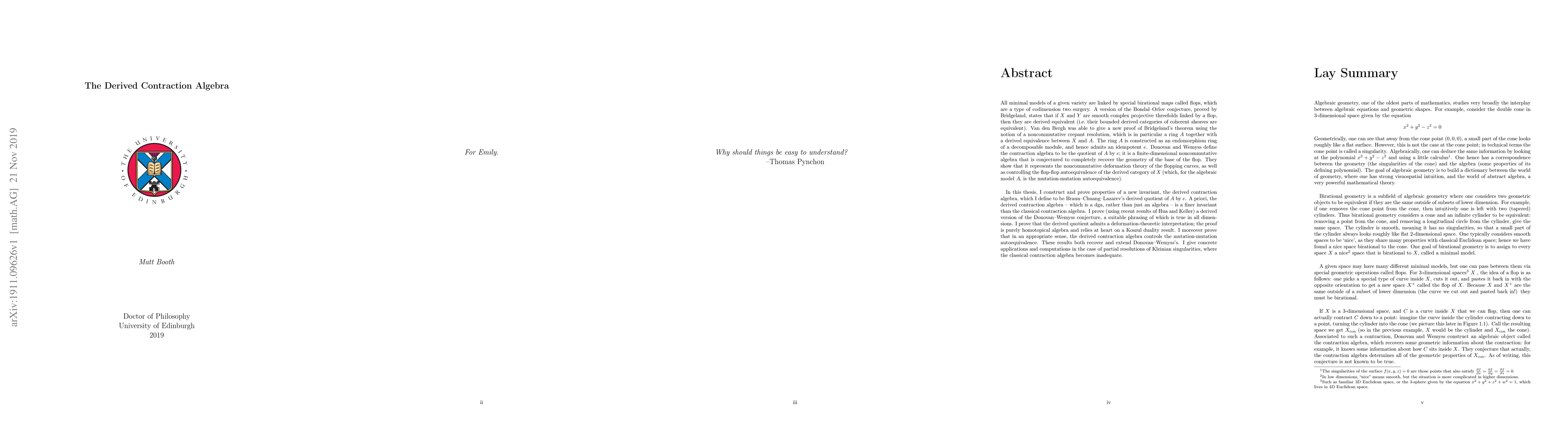This paper constructs and explores the derived contraction algebra $A^\mathrm{der}_\mathrm{con}$ as a finer invariant than the classical contraction algebra $A_\mathrm{con}$, proving its properties and applications in derived deformation theory and generalised flop-flop autoequivalences, extending previous results on the geometry of flopped bases.
