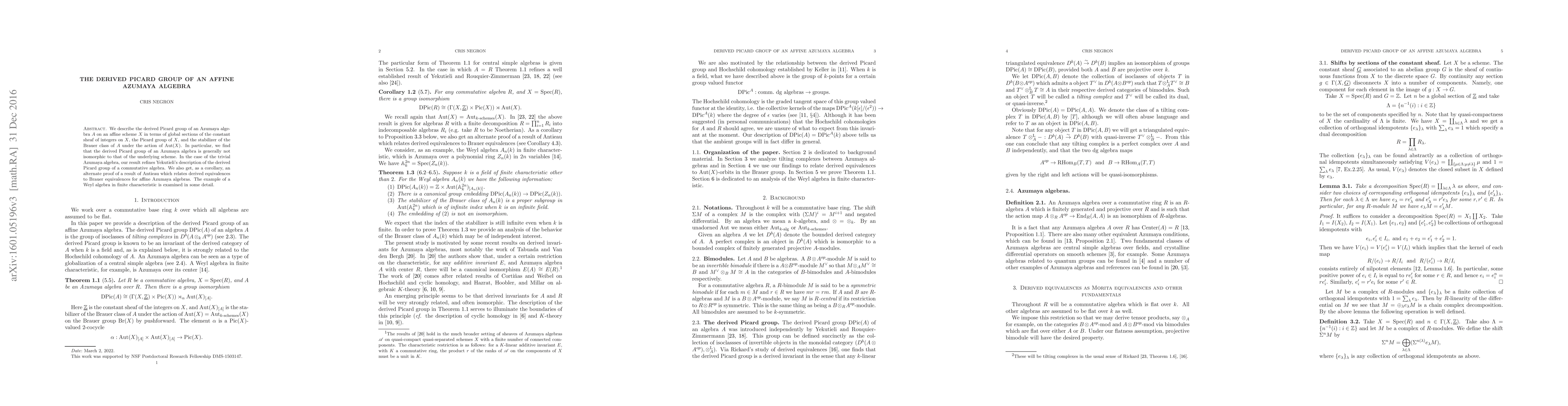 This paper investigates the derived Picard group of an affine Azumaya algebra, showing it differs from the derived Picard group of the underlying scheme. It connects this derived group to global sections of integer sheaves, the Picard group of the scheme, and the stabilizer of the algebra's Brauer class, providing an alternate proof for derived equivalences and Brauer equivalences.