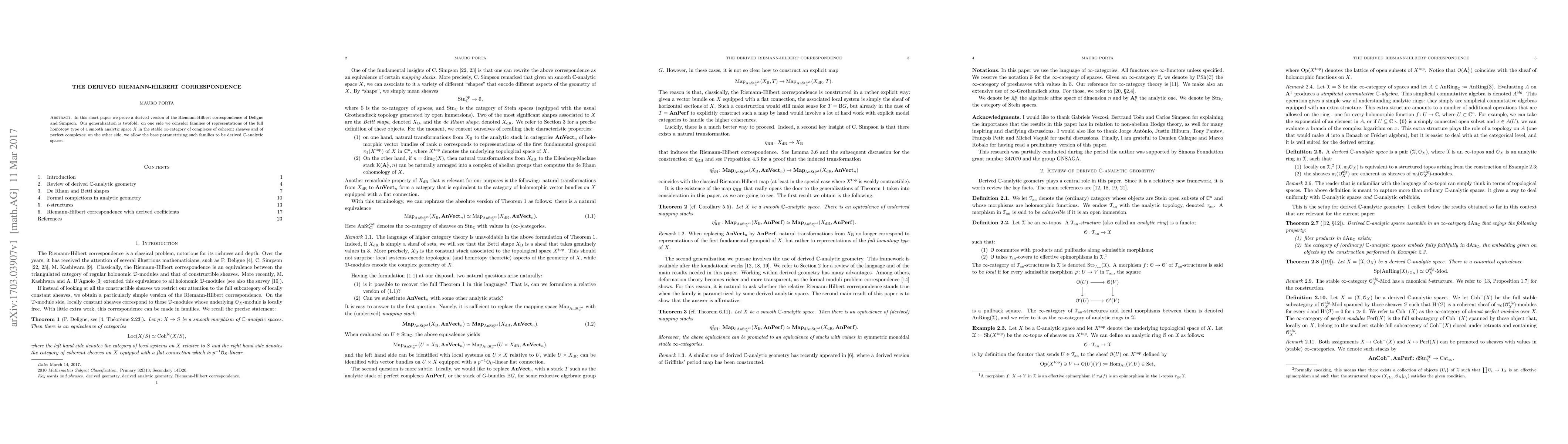 This paper proves a derived version of the Riemann-Hilbert correspondence, extending Deligne and Simpson’s work to consider families of representations associated with the full homotopy type of smooth analytic spaces in stable $\infty$-categories, and allowing the base to be derived $\mathbb{C}$-analytic spaces.