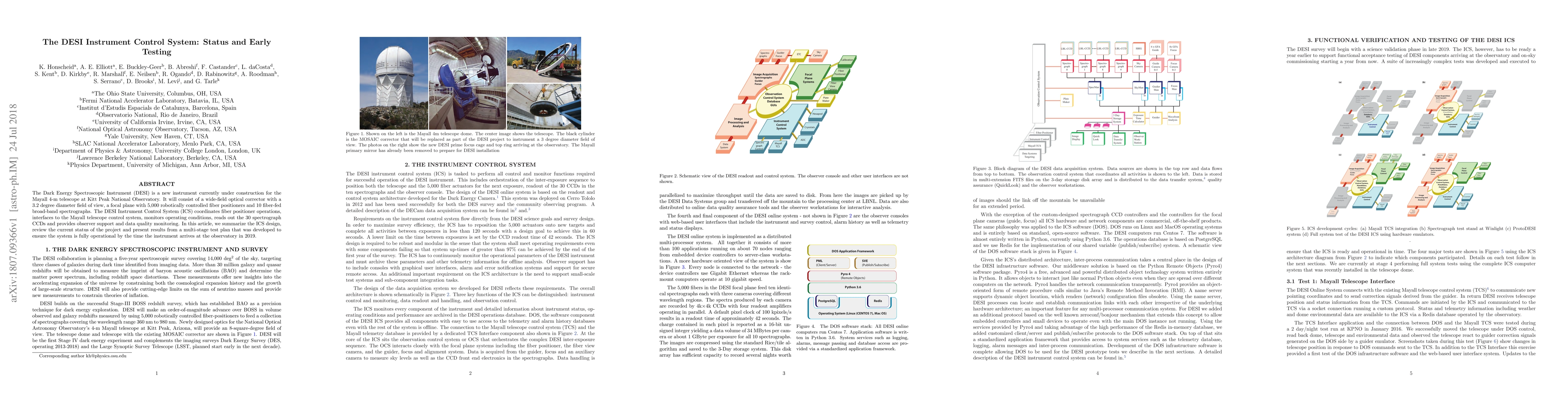 The Dark Energy Spectroscopic Instrument (DESI) is a new instrument currently under construction for the Mayall 4-m telescope at Kitt Peak National Observatory. It will consist of a wide-field optical corrector with a 3.2 degree diameter field of view, a focal plane with 5,000 robotically controlled fiber positioners and 10 fiber-fed broad-band spectrographs. The DESI Instrument Control System (ICS) coordinates fiber positioner operations, interfaces to the Mayall telescope control system, monitors operating conditions, reads out the 30 spectrograph CCDs and provides observer support and data quality monitoring. In this article, we summarize the ICS design, review the current status of the project and present results from a multi-stage test plan that was developed to ensure the system is fully operational by the time the instrument arrives at the observatory in 2019.