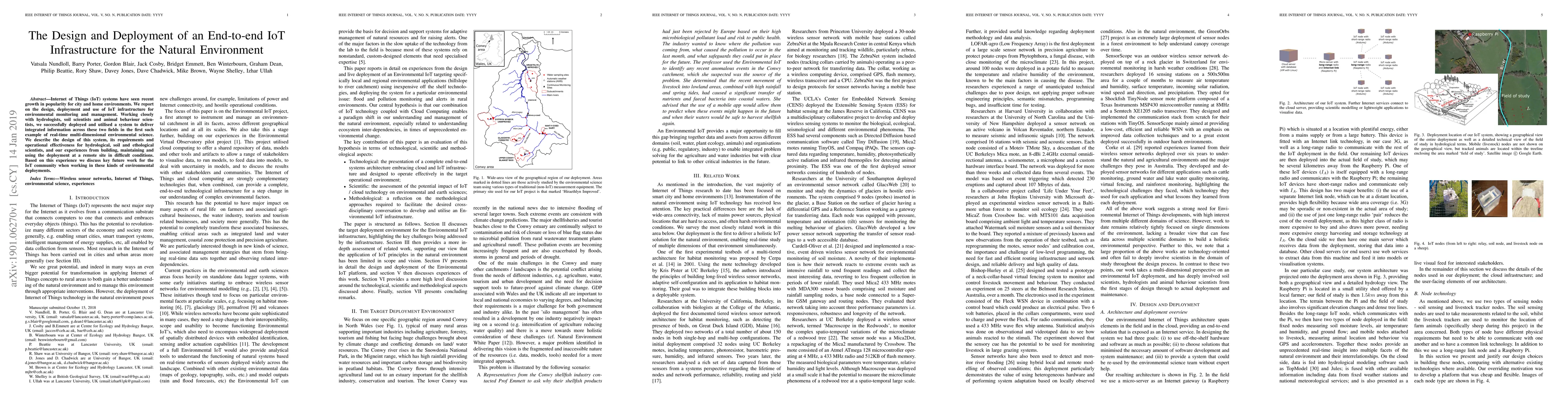 Internet of Things (IoT) systems have seen recent growth in popularity for city and home environments. We report on the design, deployment and use of IoT infrastructure for environmental monitoring and management. Working closely with hydrologists, soil scientists and animal behaviour scientists, we successfully deployed and utilised a system to deliver integrated information across these two fields in the first such example of real-time multi-dimensional environmental science. We describe the design of this system, its requirements and operational effectiveness for hydrological, soil and ethological scientists, and our experiences from building, maintaining and using the deployment at a remote site in difficult conditions. Based on this experience we discuss key future work for the IoT community when working in these kinds of environmental deployments.