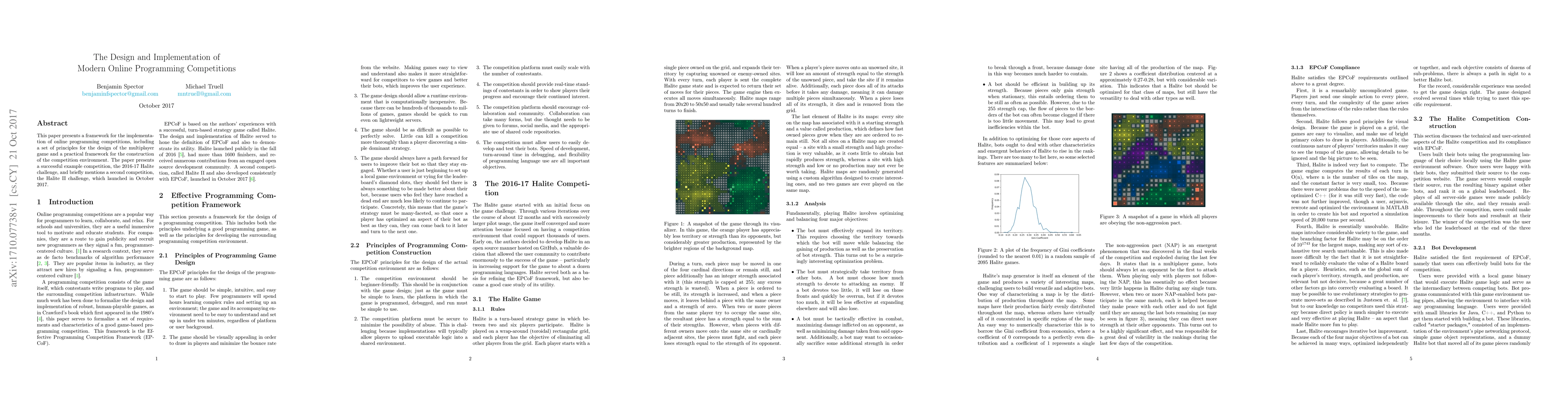 This paper presents a framework for the implementation of online programming competitions, including a set of principles for the design of the multiplayer game and a practical framework for the construction of the competition environment. The paper presents a successful example competition, the 2016-17 Halite challenge, and briefly mentions a second competition, the Halite II challenge, which launched in October 2017.