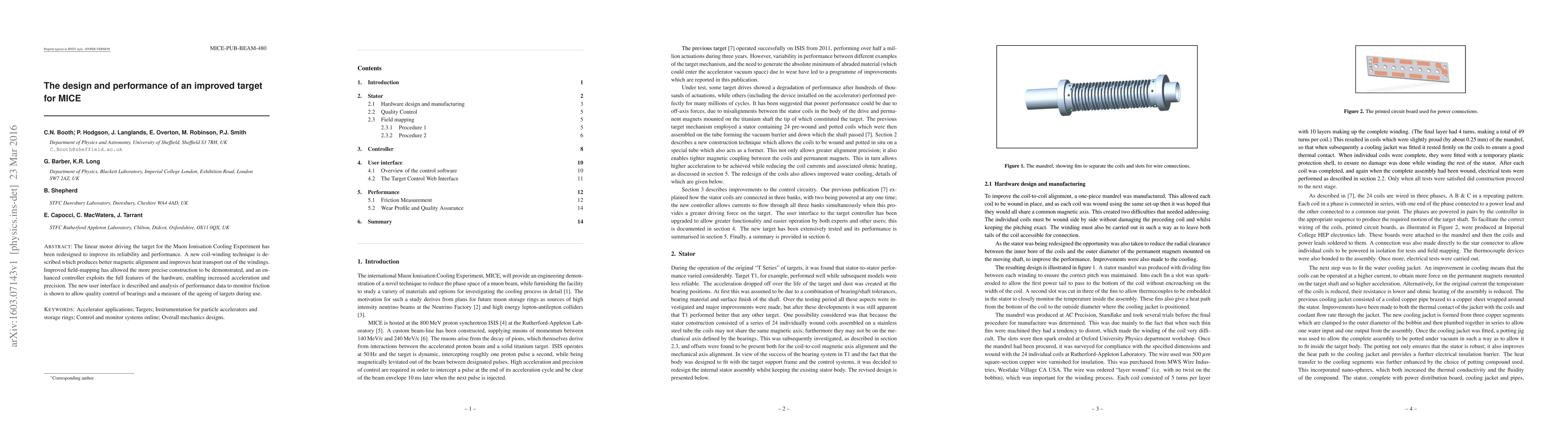 The paper details a redesigned linear motor for the Muon Ionisation Cooling Experiment, featuring improved coil-winding, enhanced magnetic alignment, and better heat transport, leading to increased acceleration and precision. The new design also includes a user interface for performance monitoring and friction analysis to ensure bearing quality and target longevity.