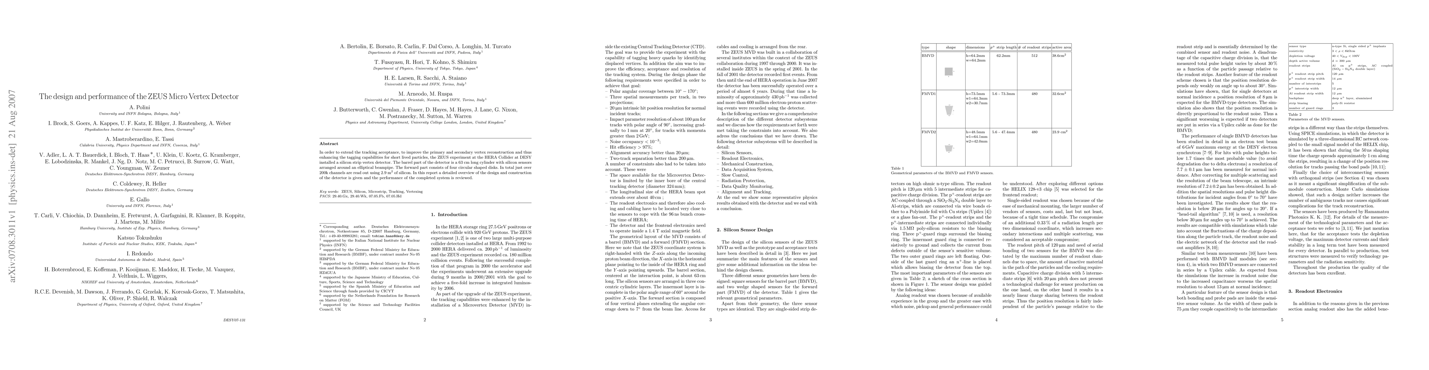 The ZEUS Micro Vertex detector, installed at the HERA Collider, enhances tracking and vertex reconstruction for short-lived particles using a silicon strip design. The detector comprises a 63 cm barrel and four forward disks, totaling over 200k channels and 2.9 m² of silicon, and demonstrates improved tagging capabilities.