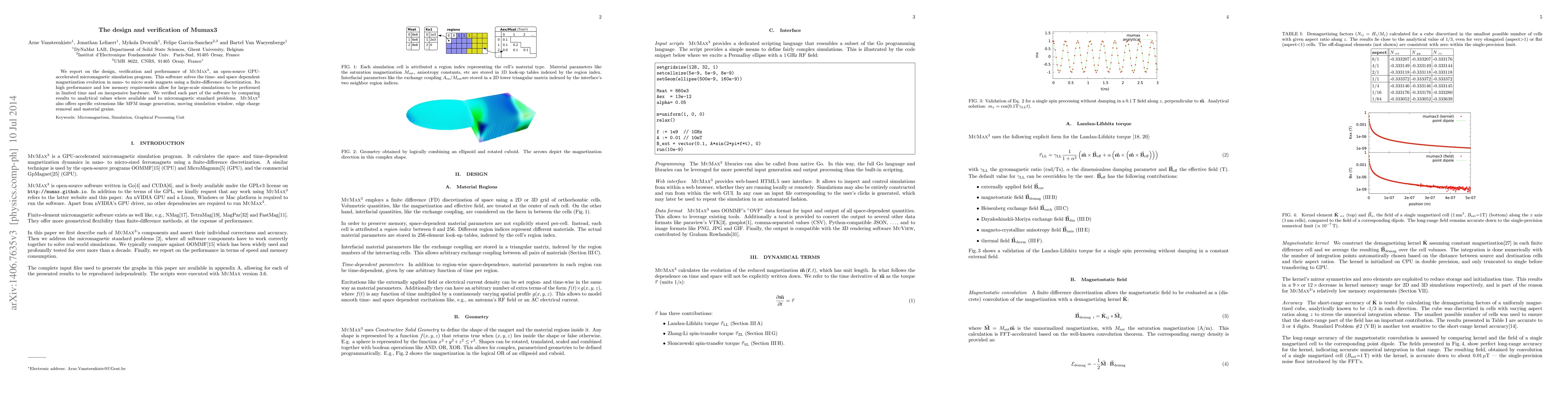 We report on the design, verification and performance of mumax3, an open-source GPU-accelerated micromagnetic simulation program. This software solves the time- and space dependent magnetization evolution in nano- to micro scale magnets using a finite-difference discretization. Its high performance and low memory requirements allow for large-scale simulations to be performed in limited time and on inexpensive hardware. We verified each part of the software by comparing results to analytical values where available and to micromagnetic standard problems. mumax3 also offers specific extensions like MFM image generation, moving simulation window, edge charge removal and material grains.